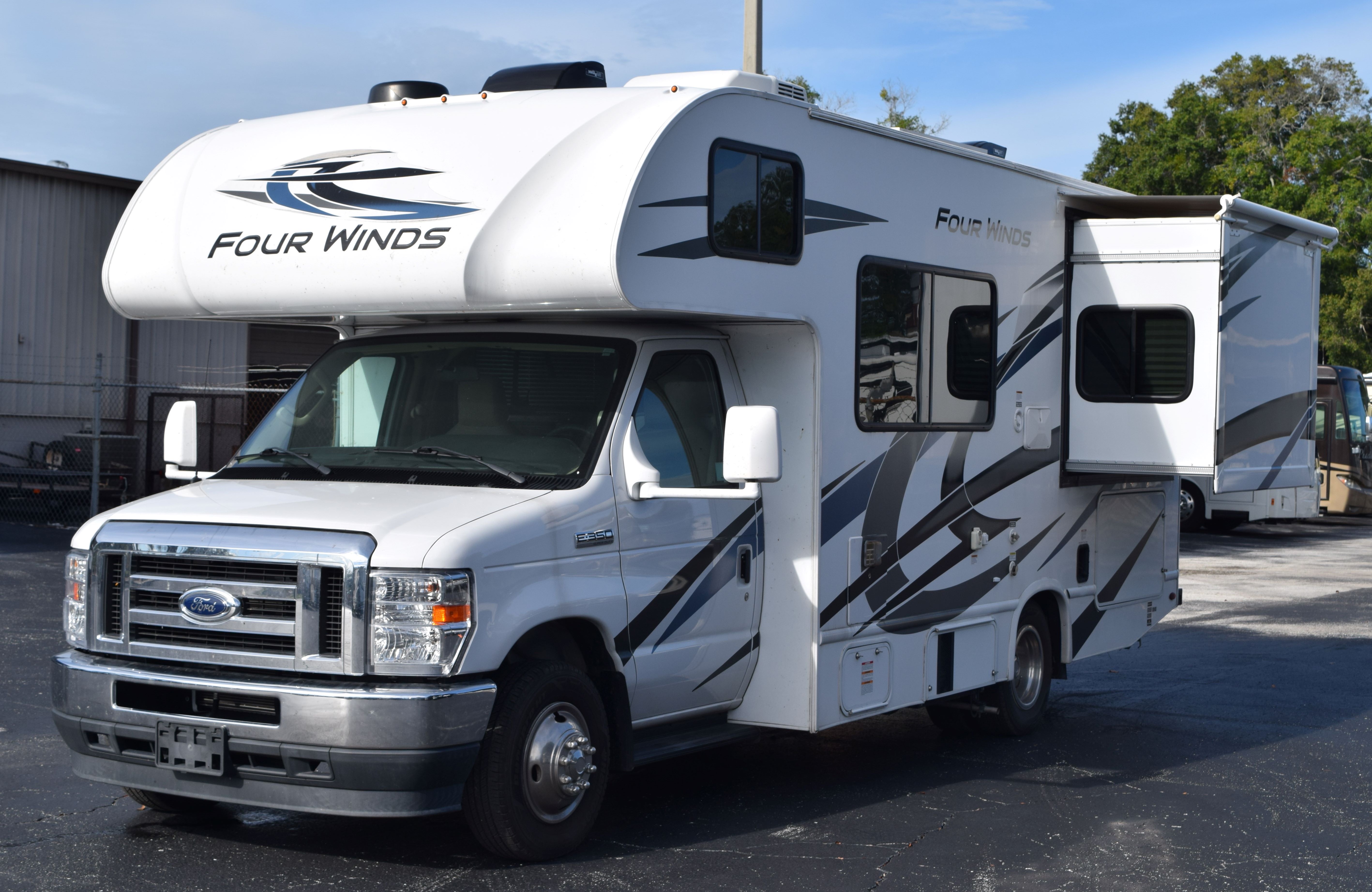 This 2022 Thor Four Winds (M-22B GM 3500) is the perfect unit for your next adventure! At 24ft and just over 19,000 miles, this unit is the ideal set up for a couple or families with small children. The main bedroom is in the rear of the Class C that houses a queen-size bed and plenty of storage. The full bath separates the bedroom from the kitchen. The kitchen comes equipped with plenty of storage options, 4-burner stove top/oven combo, microwave, 2-door Dometic fridge/freezer combo, large double sink, and folding counter for additional countertop space. The bench style dinette converts into a bed for extra sleeping arrangements, as well as a bunk bed over the cab. This coach also comes stocked with a Coleman rooftop A/C, water heater, furnace, onboard generator, main patio awning, one slide topper, Bigfoot leveling system, and backup camera system. Come by to see this unit for yourself or call today with any questions.
