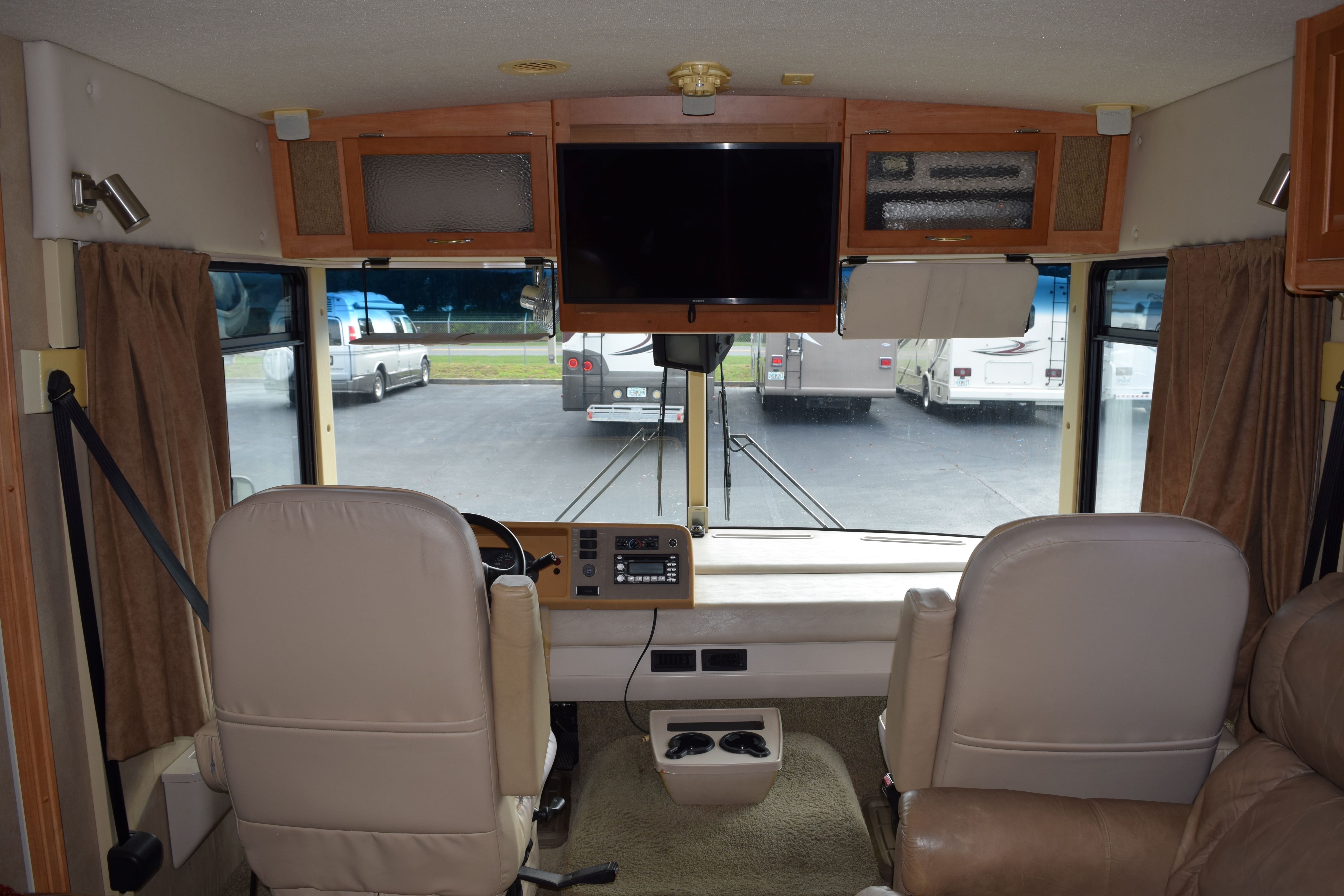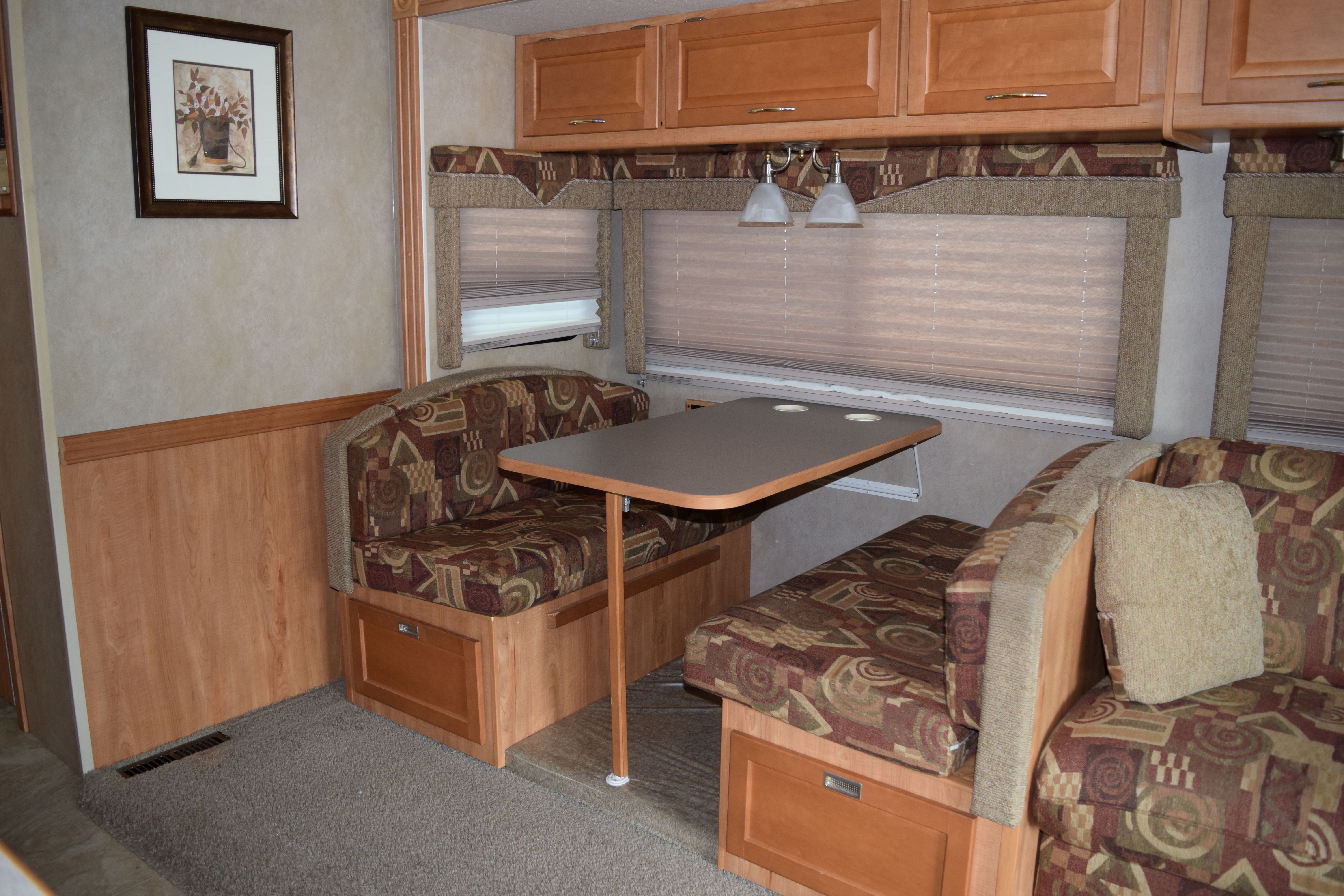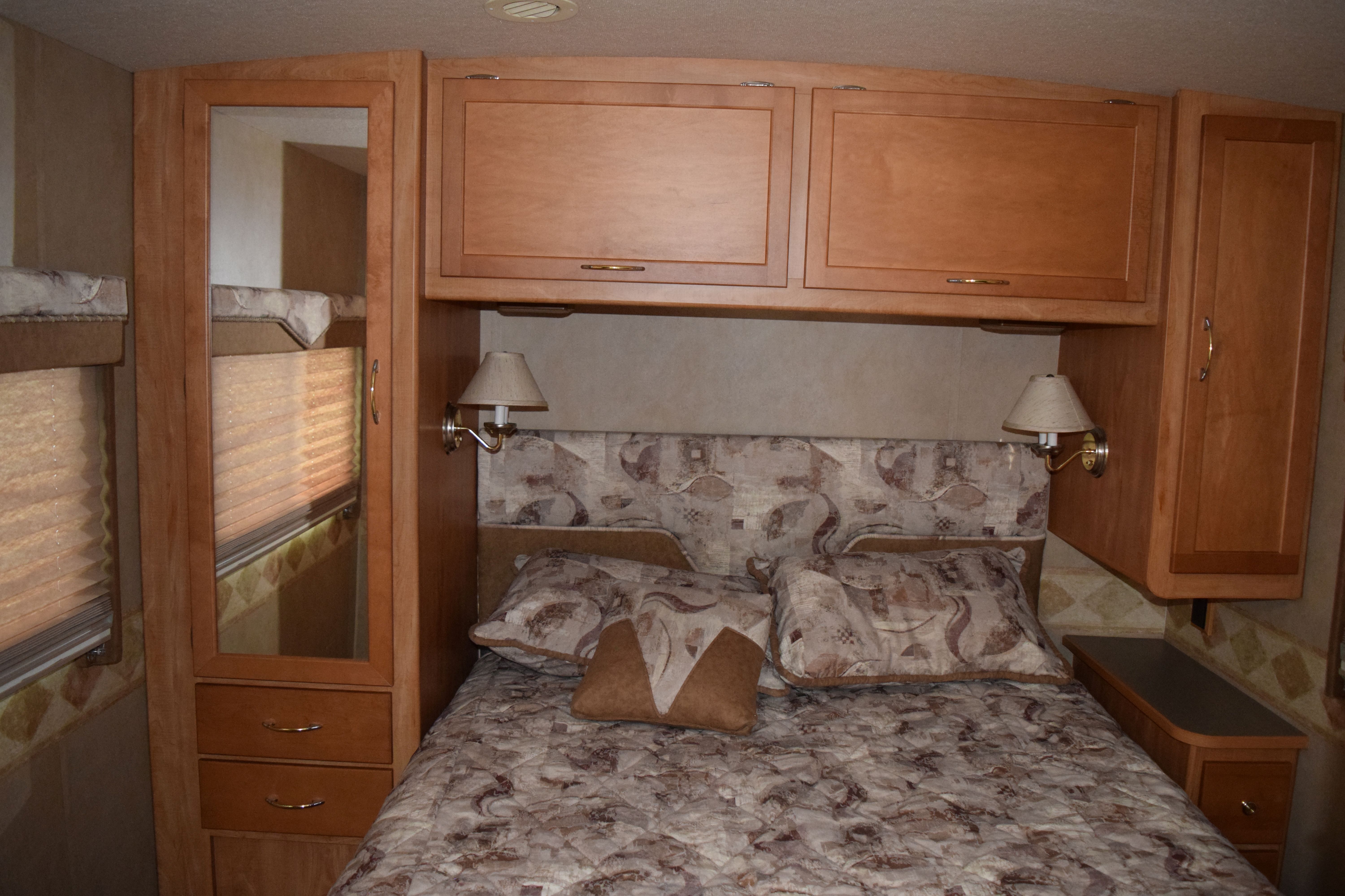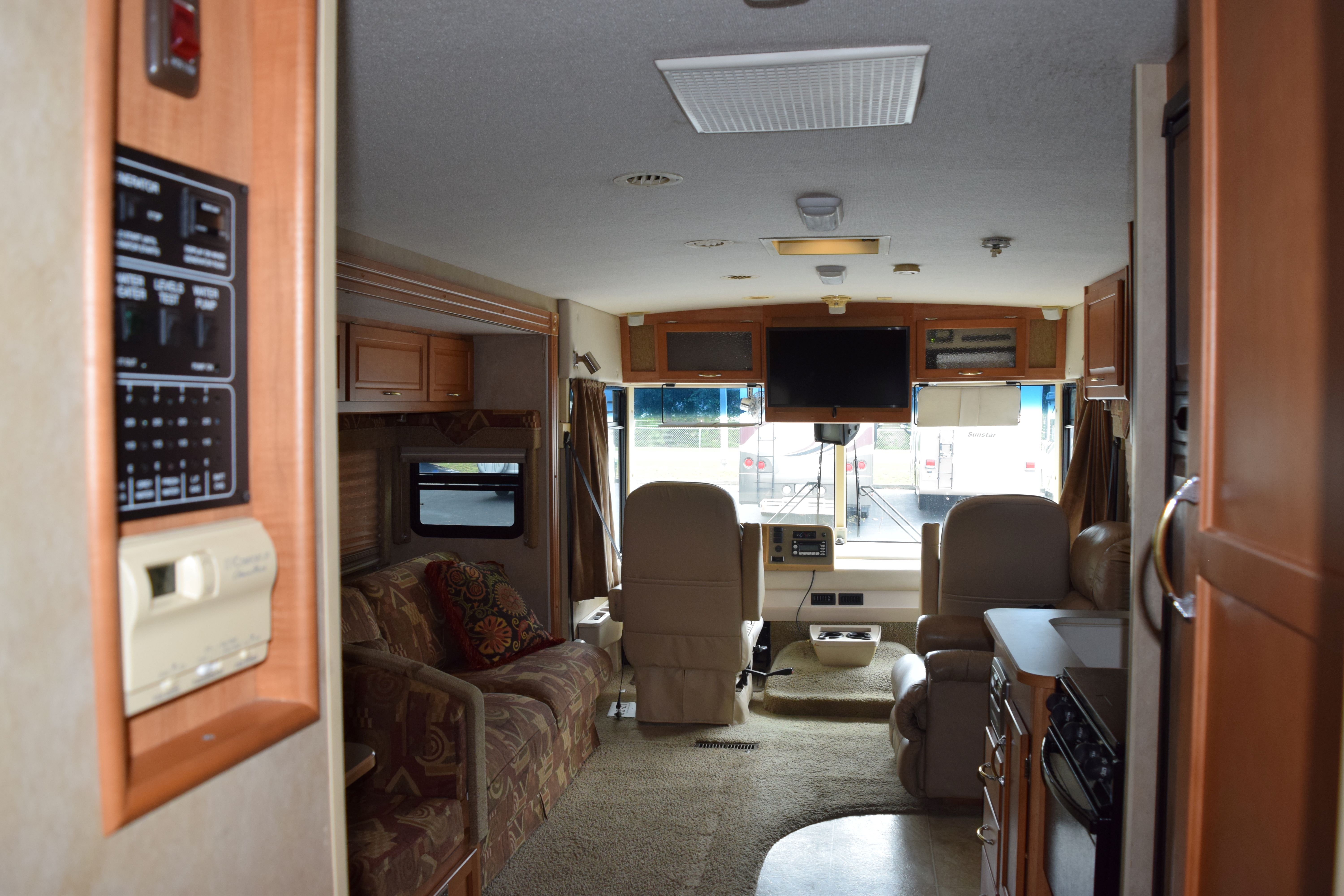 This 2006 Itasca Sunova (M-30B Ford) is the perfect coach for you! At 31ft and 81,200 miles, this unit can sleep between 2-4 people. The living area holds a lazyboy-style recliner and large couch that can be converter into a sleeping area. The bench-style dinette can also be converter into a bed. The kitchen is stocked with tons of storage space, large double sink, folding counter for additional counter space, 4-burner stovetop/oven combo, microwave, and 2-door Norcold fridge/freezer combo. The split bath separates the living area from the main bedroom. The main bedroom houses a queen-size bed and plenty of closet space. The coach is also equipped with a Coleman rooftop A/C, water heater, furnace, manual patio awning, one slide topper, powered leveling system, back up camera system, and onboard generator. Come by to see this unit for yourself, or call with any questions. 352-589-4422