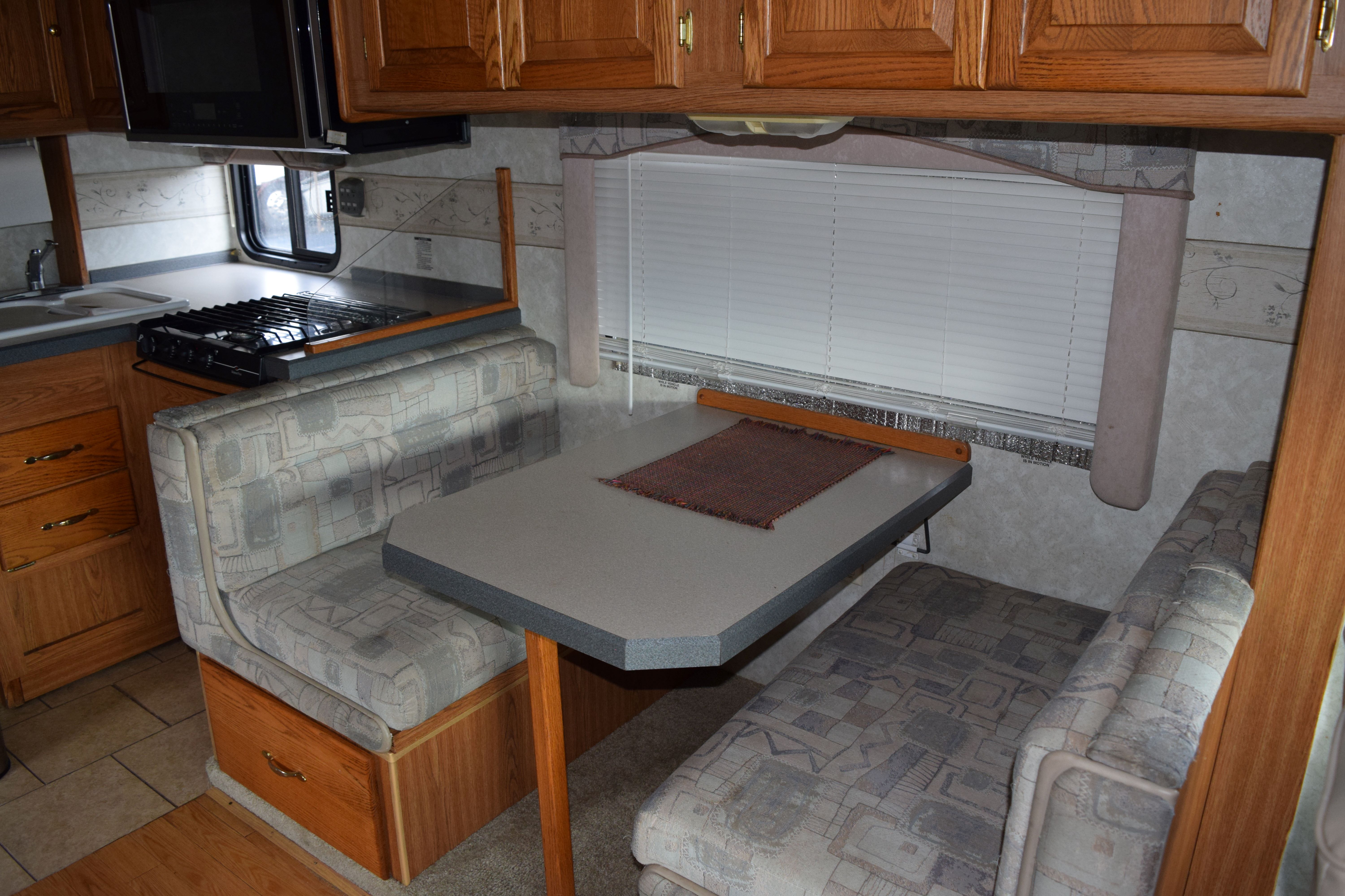 This 2004 Tiffin Allegro (M-30DA Workhorse) is the perfect unit for you! Don't let the mileage on this unit fool you! This coach had the engine replaced around 37,000 miles, meaning the mileage for this unit is 57,956 on the replacement engine. At 31.5ft, this motorhome can sleep up between 4-6 people comfortably. The living area houses a pull-out couch and bench-style dinette that both convert into sleeping area. The kitchen is stocked with tons of storage availability, double sink, 3-burner stove top, folding counter for additional countertop space, residential style Whirlpool microwave, 2-door Dometic fridge/freezer combo, and separate pantry for even more storage. The split bath separates the kitchen from the main bedroom area. The bedroom area houses a queen-size bed, lots of storage space, and even a little vanity area for getting ready. This coach is also equipped with a manual patio awning, two slide toppers, hydraulic leveling system, water heater furnace, Coleman rooftop A/C, onboard generator, 2 TVs, and backup camera system. Come by to see this unit for yourself, or call with any questions for inquiries. 352-589-4422