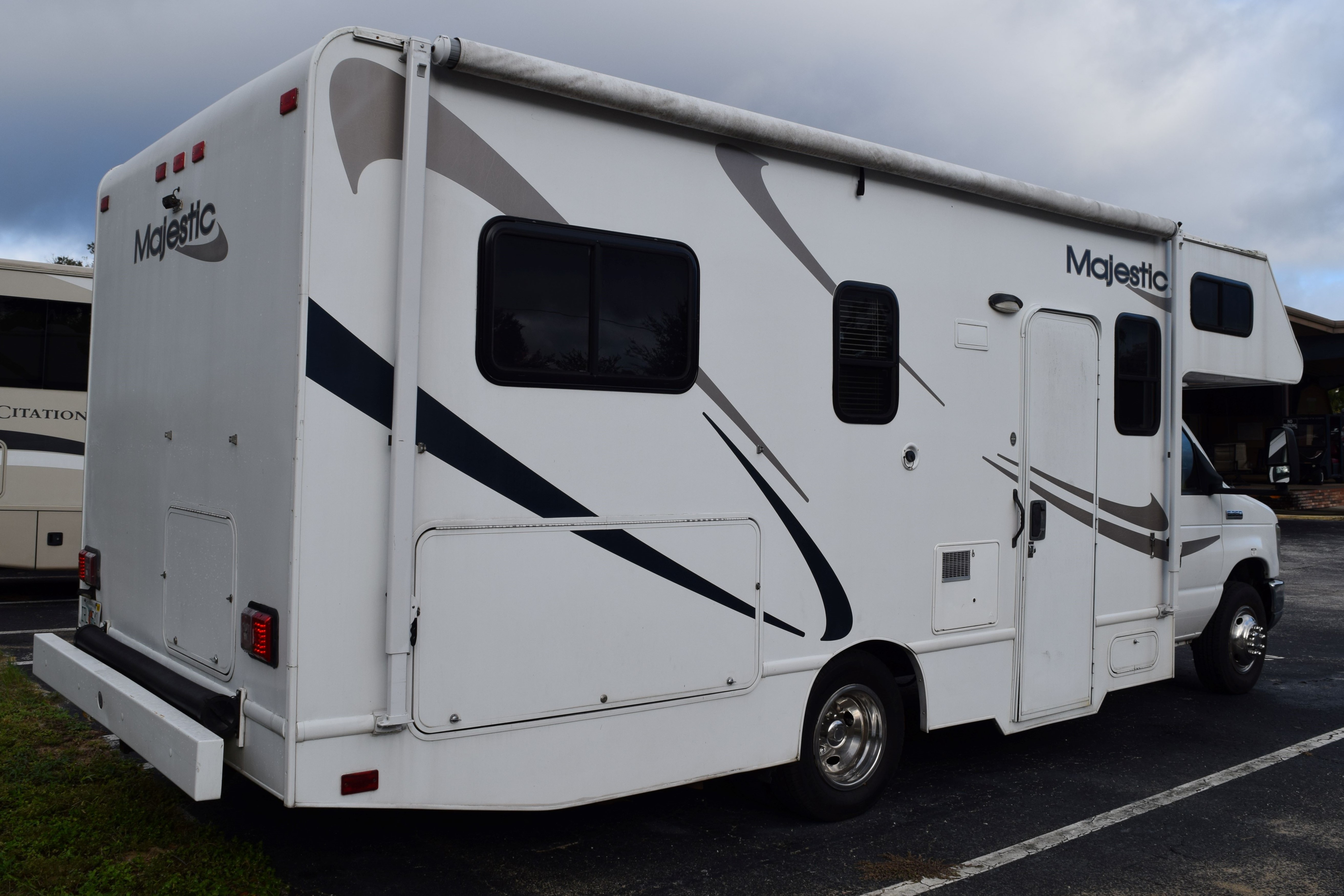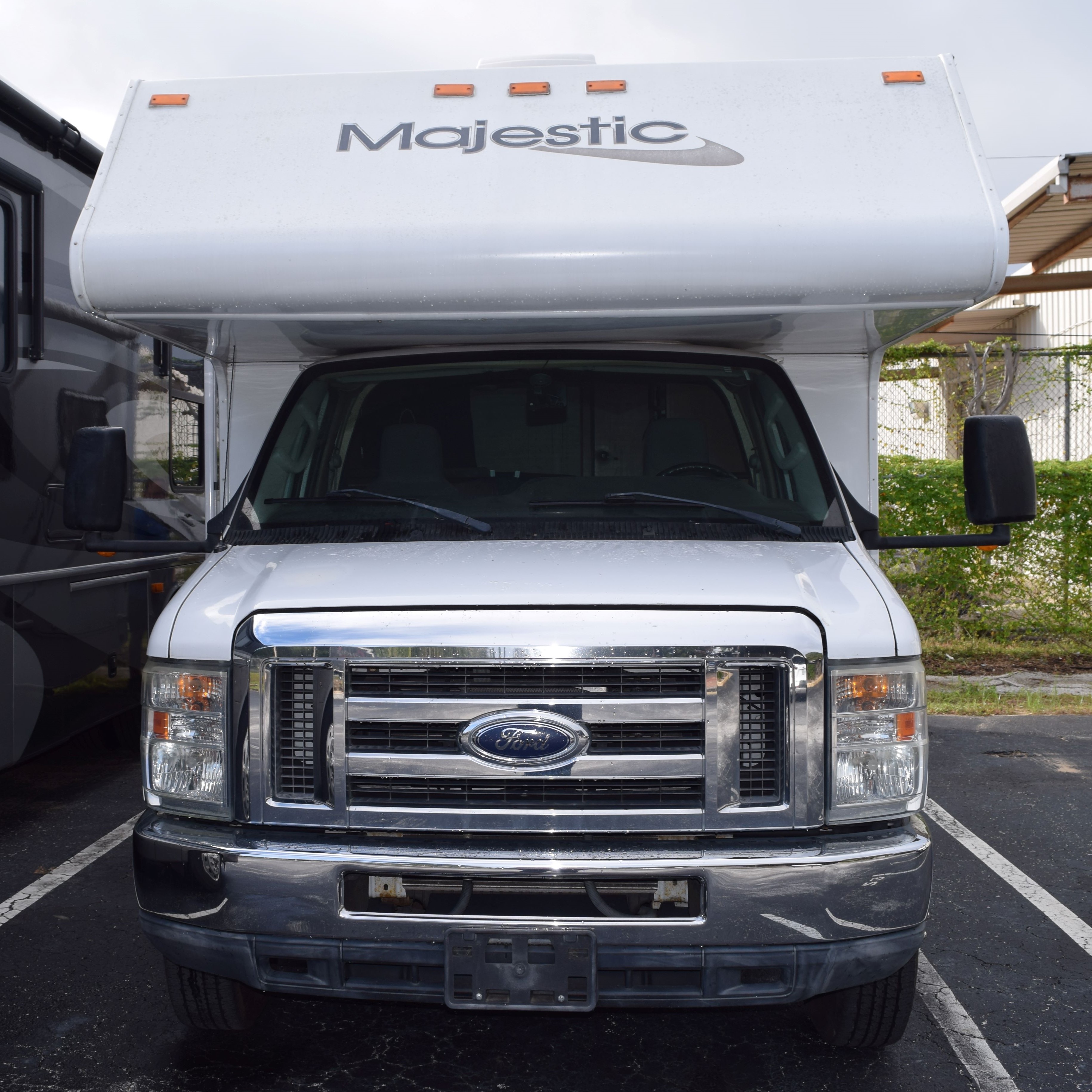 This 2013 Thor Majestic (M-23A Ford) is the perfect little unit for you! With just over 143,000 miles, this coach has seen a lot of places, and is ready to take you on your next adventure. At 24.5ft long and equipped with a queen-size bed in the rear, a bunk area over the cab, and a bench-style dinette that converts into a sleeping area, this small but mighty coach can sleep between 3-5 people with plenty of room. The kitchen is stocked with plenty of storage options, a large single sink, folding counter for additional countertop space, microwave, 3-burner stovetop/oven combo, and 2-door Dometic fridge/freezer combo. The split bath is located in the rear of the coach. This unit is also equipped with a Dometic rooftop A/C, manual patio awning, window awning, water heater, furnace, and onboard generator. Come by to see this great unit today, or call with any questions or inquiries.