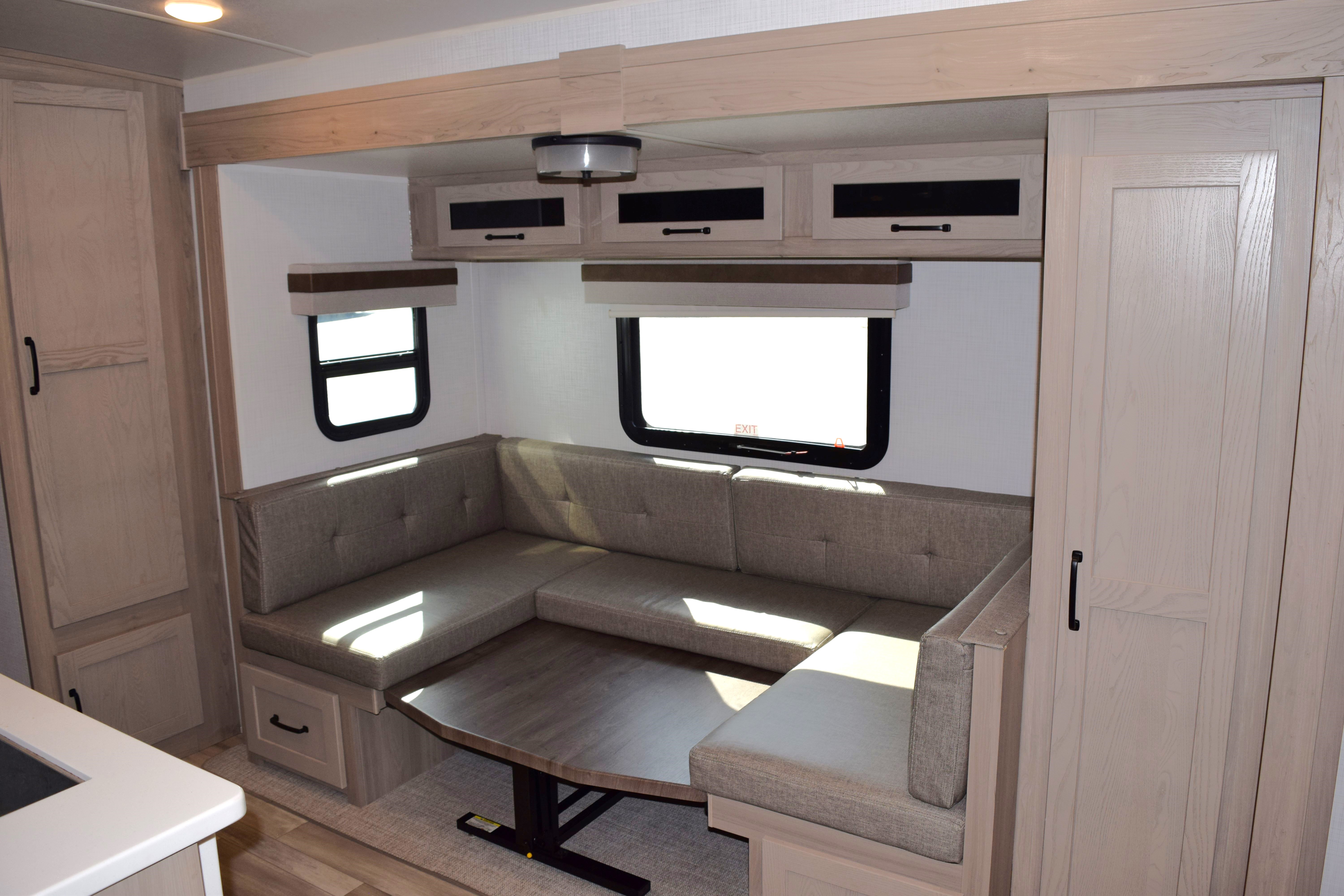 This 2024 Rookwood Mini Lite (M-2509S) has one of the most efficient layouts for a smaller trailer that you have ever seen. At 25ft, this trailer can sleep 4-6 people with ease. The front of the trailer houses a jack-knife couch that breaks down to accommodate for the murphy-style queen-size surrounded by loads of storage options. There is a bench style dinette with table that breaks down as another sleeping area. The kitchen is equipped with two stand-alone pantries, folding countertop that offers additional counter space, large single sink, 3-burner stovetop/oven combo, microwave, and 2-door fridge/freezer combo. The full bath is located in the rear of the trailer, accompanied with two large bunks for additional sleeping areas. The trailer is also stocked with a water heater, furnace, powered patio awning, retracting outlet tower, TV, Colman rooftop A/C, and powered leveling jack system. Come by to see this awesome unit for yourself, or call today with any questions!
