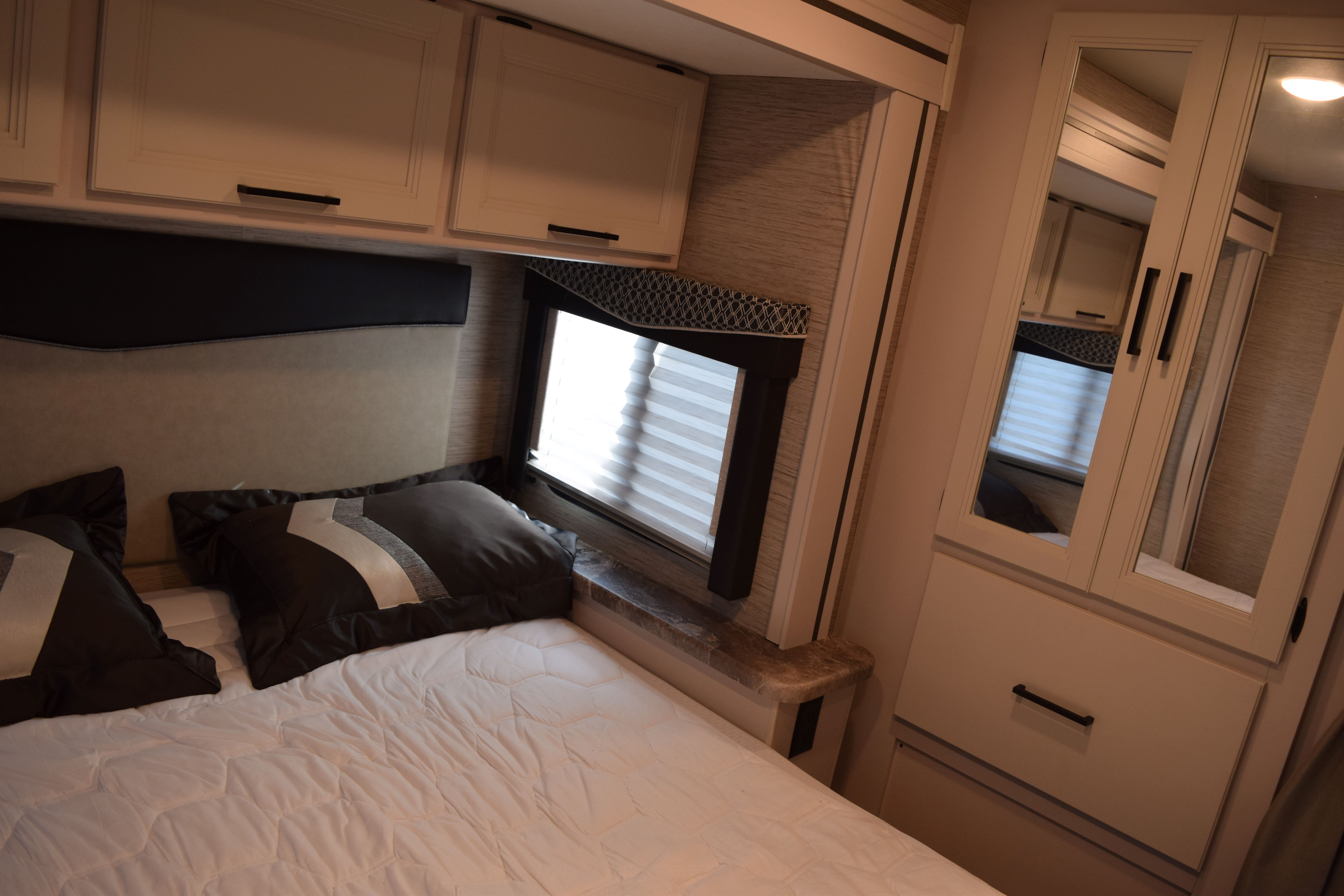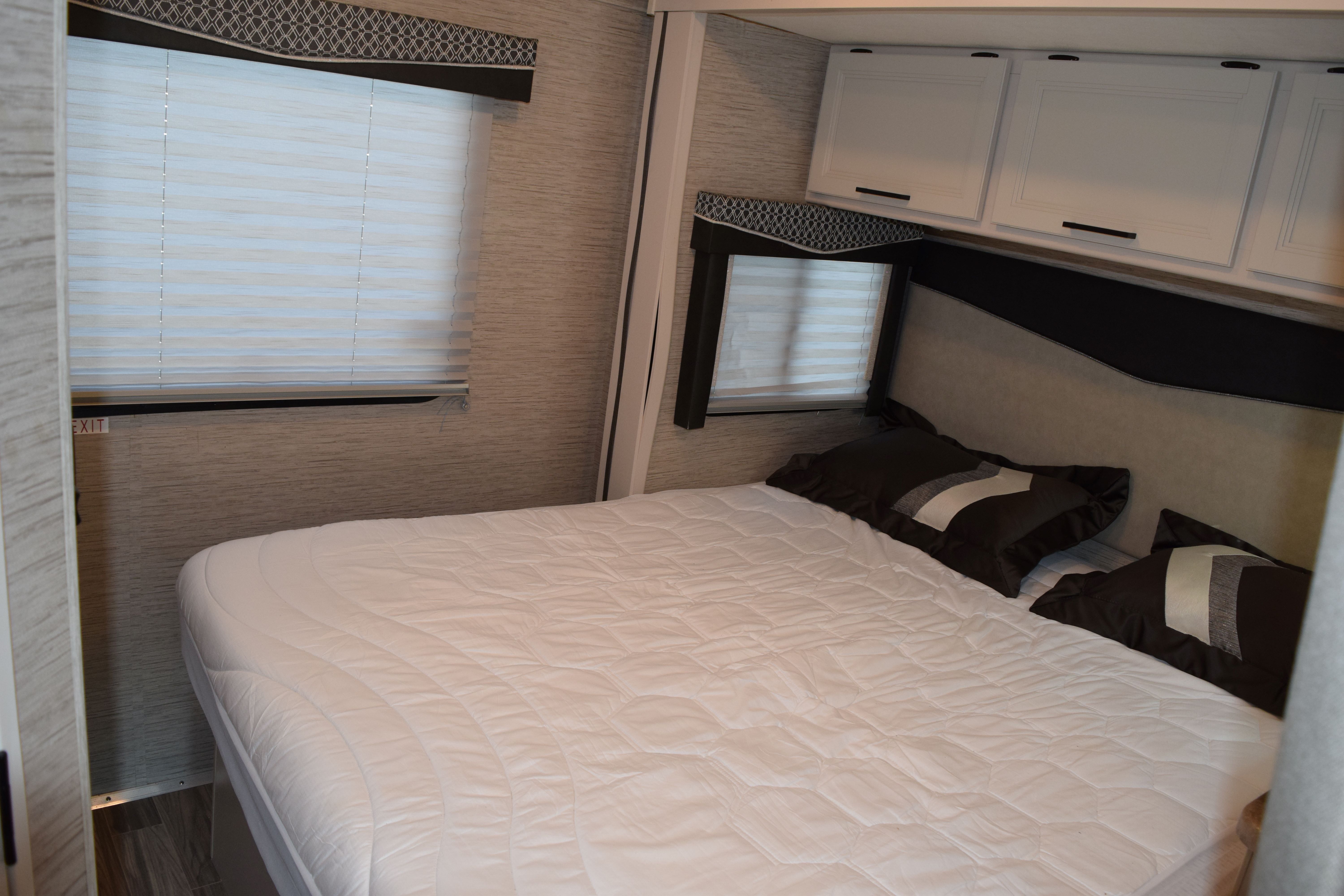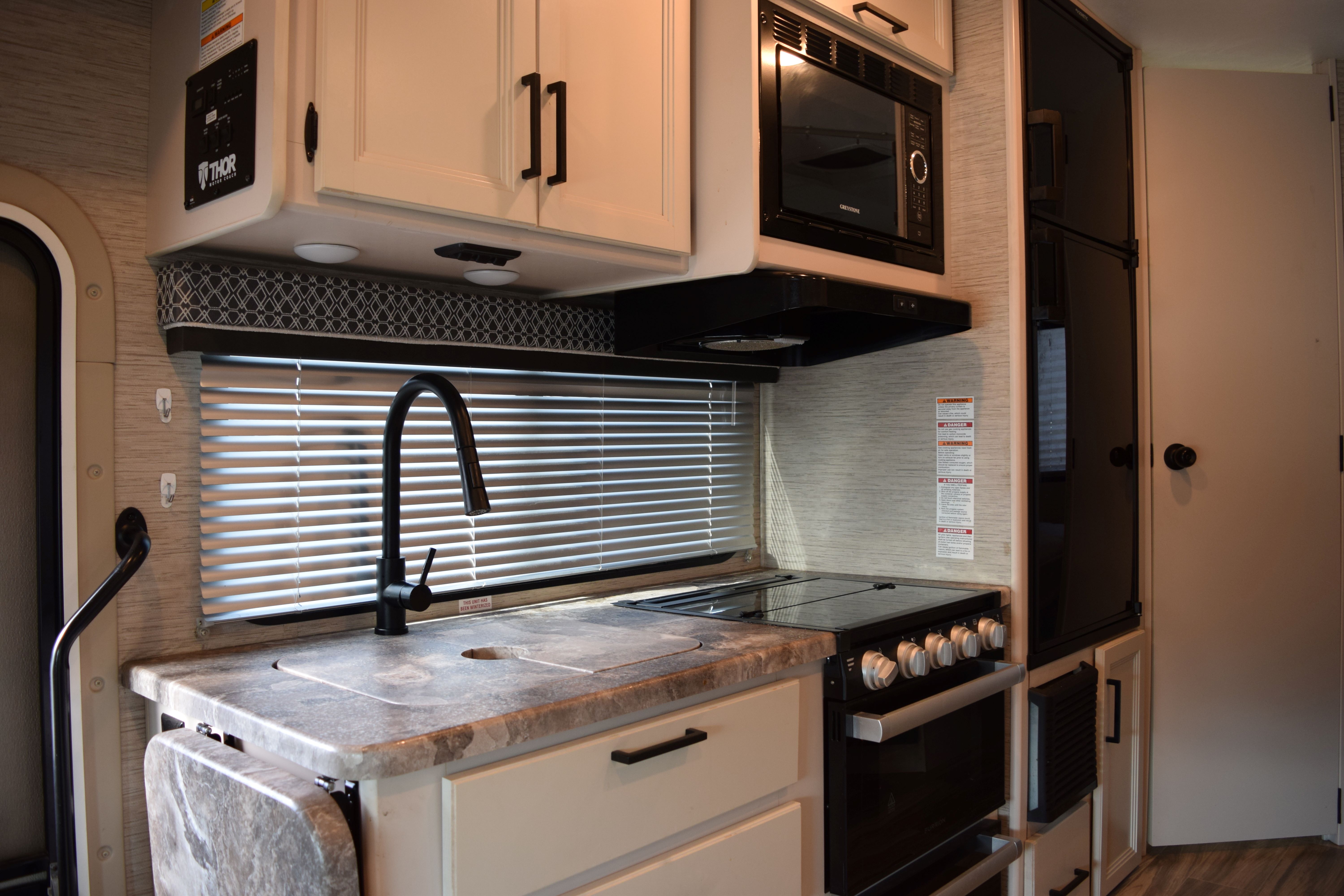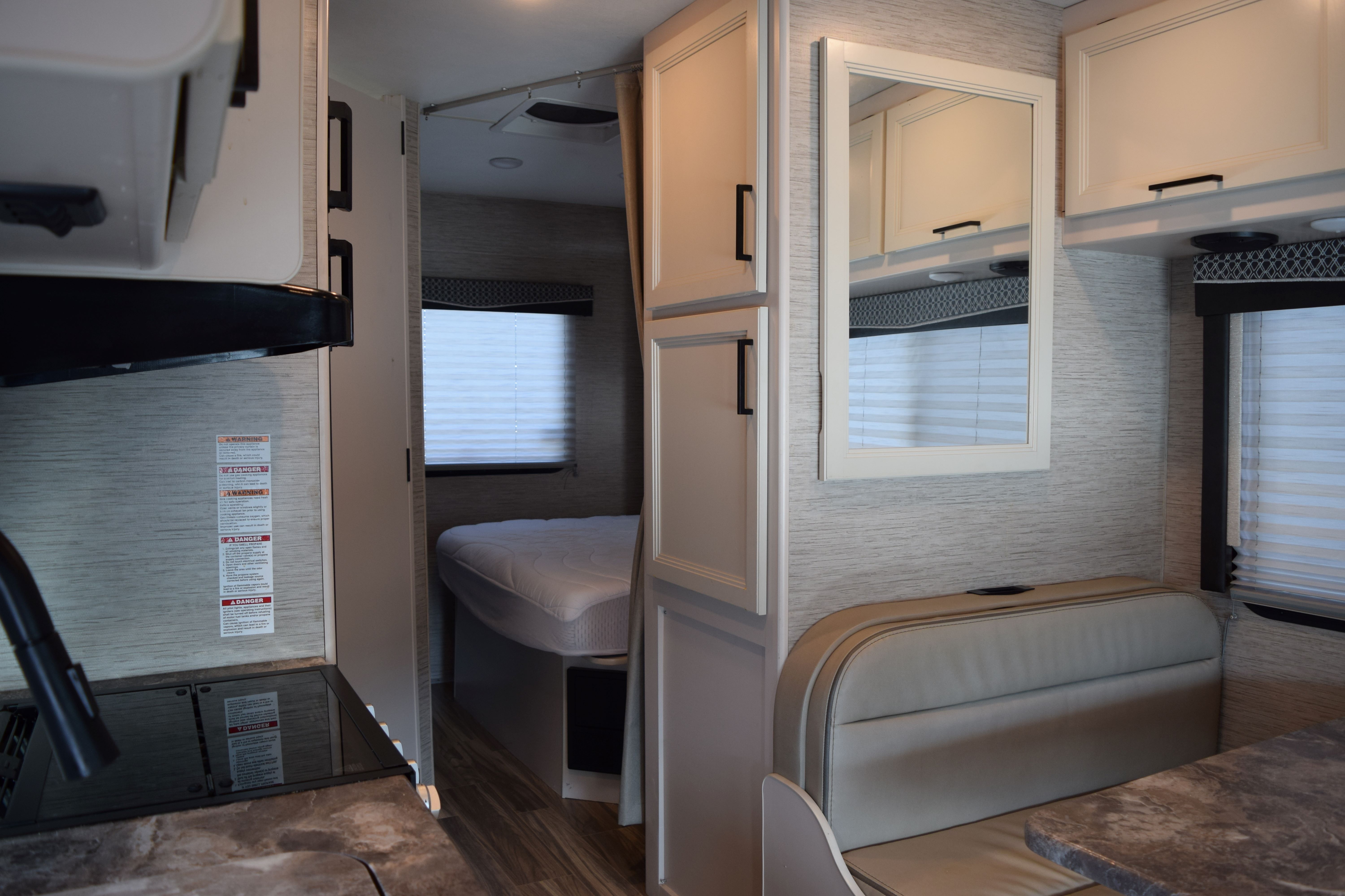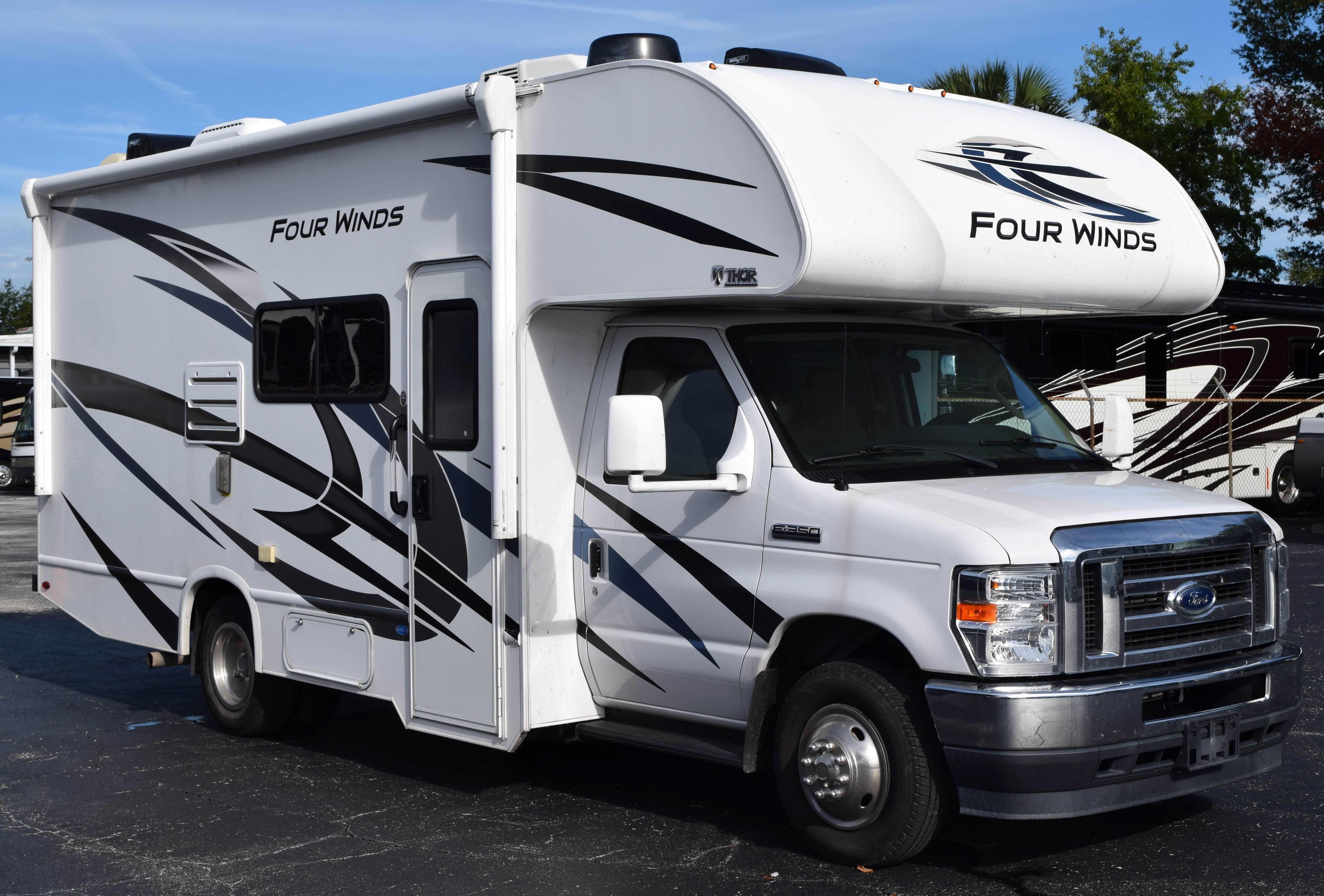 This 2022 Thor Four Winds (M-22B GM 3500) is the perfect unit for your next adventure! At 24ft and just over 19,000 miles, this unit is the ideal set up for a couple or families with small children. The main bedroom is in the rear of the Class C that houses a queen-size bed and plenty of storage. The full bath separates the bedroom from the kitchen. The kitchen comes equipped with plenty of storage options, 4-burner stove top/oven combo, microwave, 2-door Dometic fridge/freezer combo, large double sink, and folding counter for additional countertop space. The bench style dinette converts into a bed for extra sleeping arrangements, as well as a bunk bed over the cab. This coach also comes stocked with a Coleman rooftop A/C, water heater, furnace, onboard generator, main patio awning, one slide topper, Bigfoot leveling system, and backup camera system. Come by to see this unit for yourself or call today with any questions.