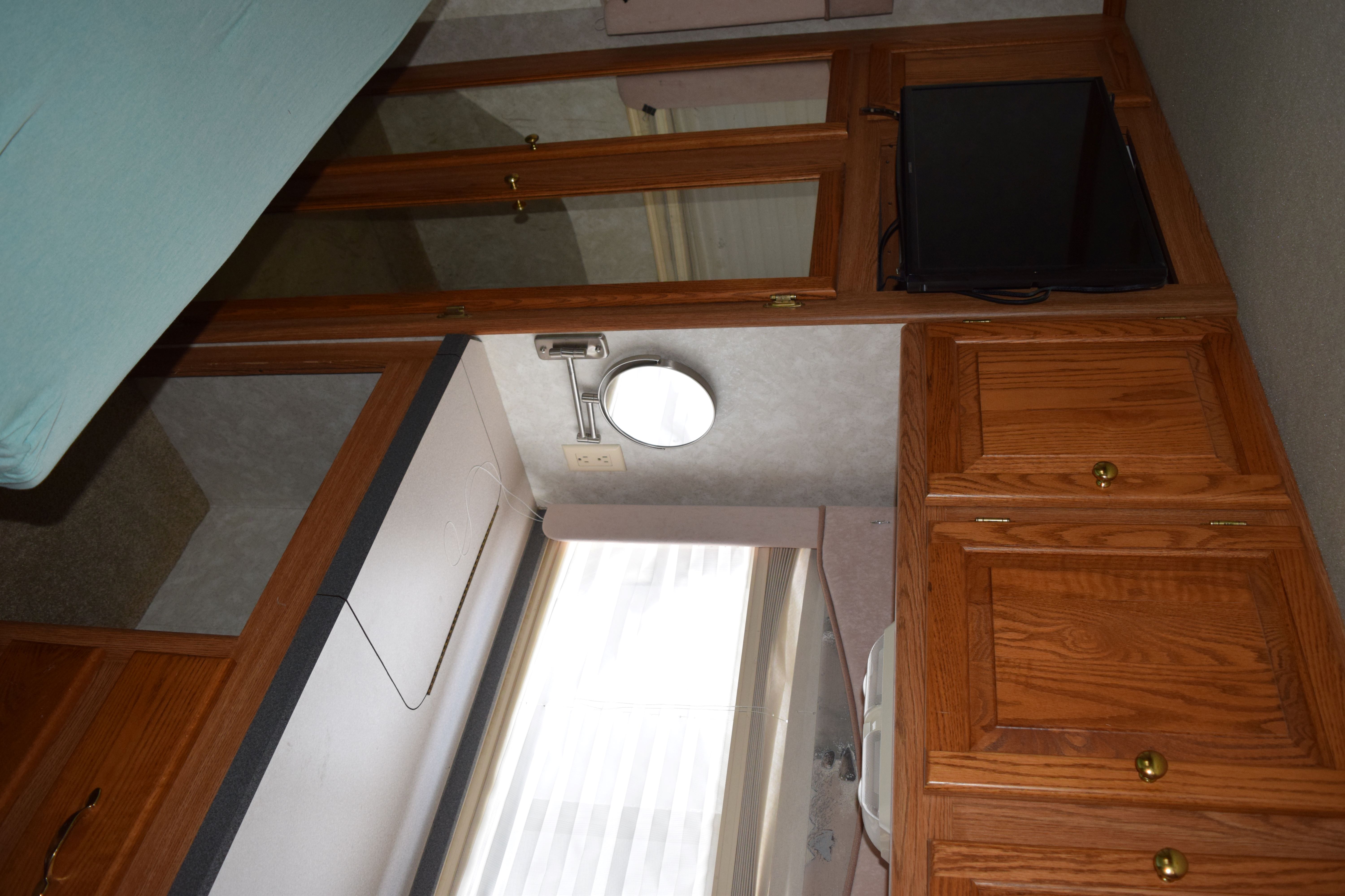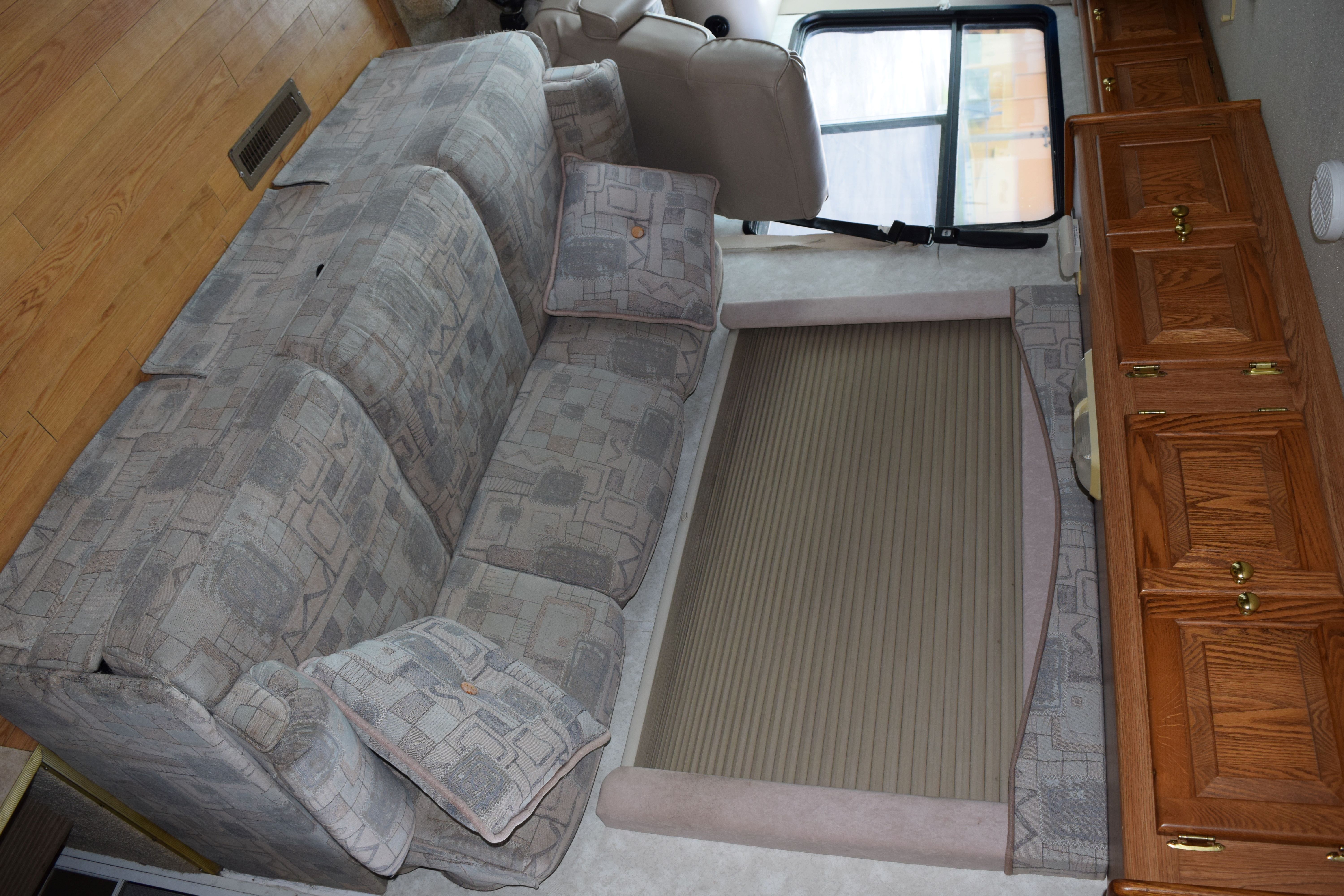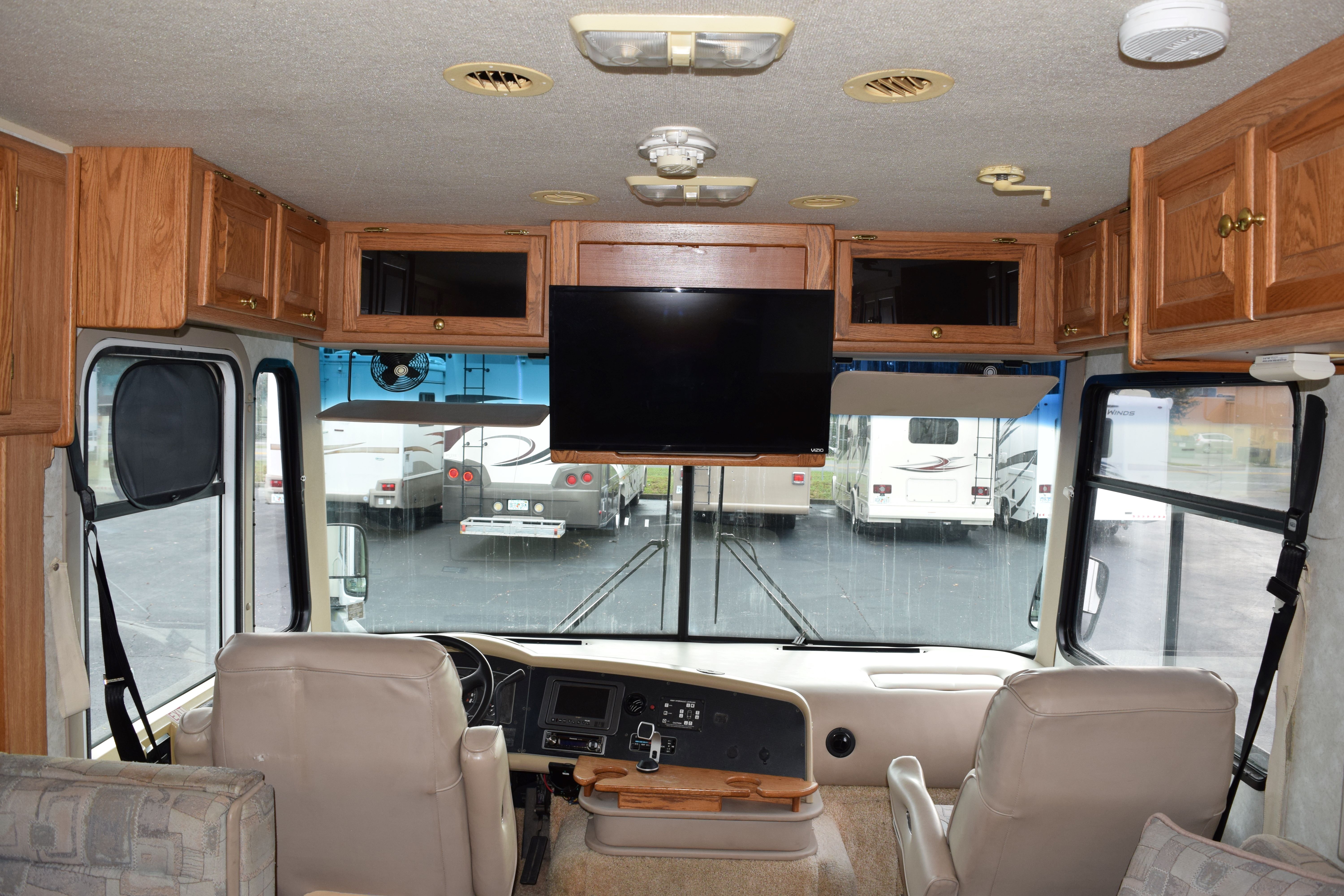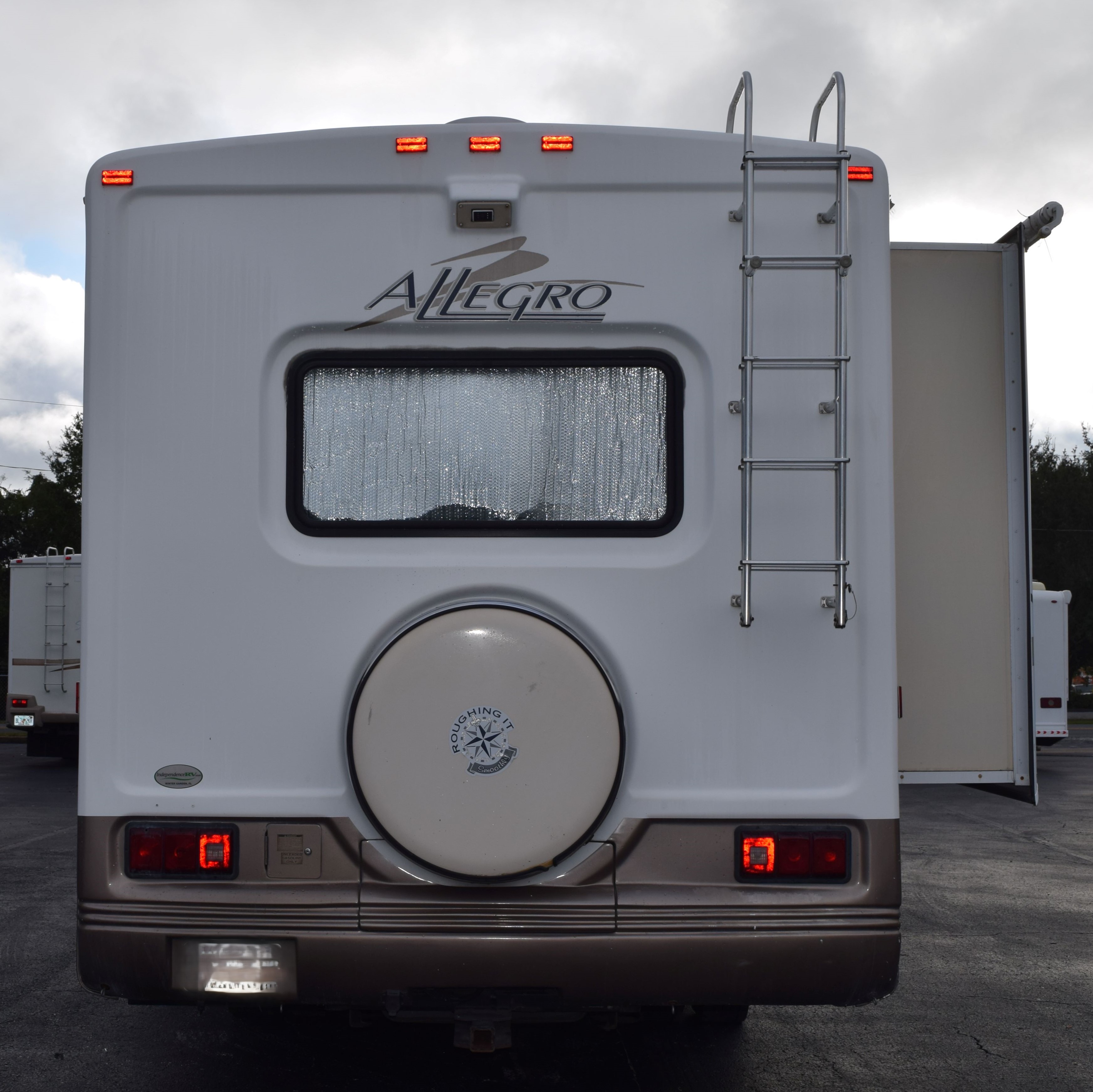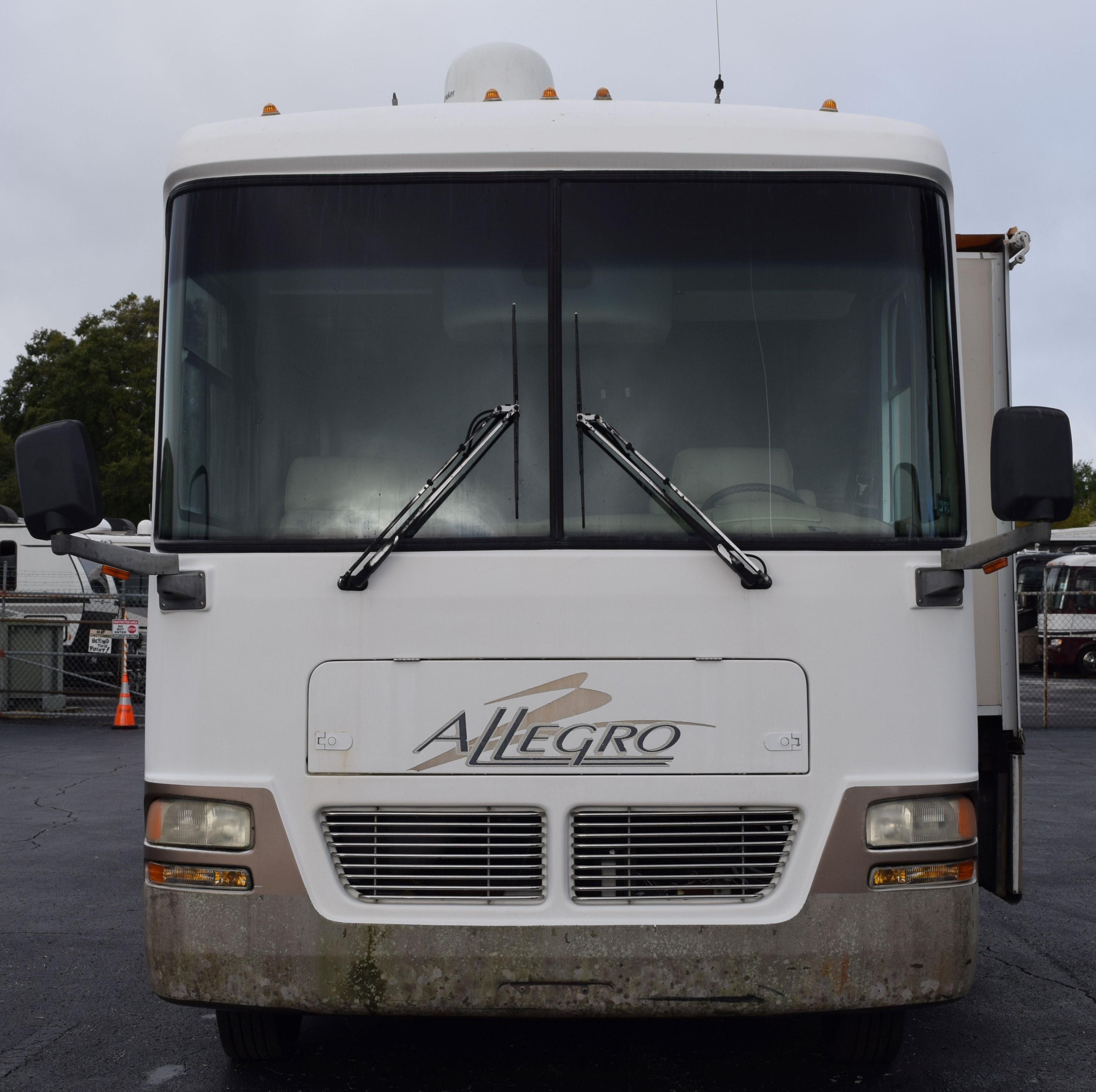 This 2004 Tiffin Allegro (M-30DA Workhorse) is the perfect unit for you! Don't let the mileage on this unit fool you! This coach had the engine replaced around 37,000 miles, meaning the mileage for this unit is 57,956 on the replacement engine. At 31.5ft, this motorhome can sleep up between 4-6 people comfortably. The living area houses a pull-out couch and bench-style dinette that both convert into sleeping area. The kitchen is stocked with tons of storage availability, double sink, 3-burner stove top, folding counter for additional countertop space, residential style Whirlpool microwave, 2-door Dometic fridge/freezer combo, and separate pantry for even more storage. The split bath separates the kitchen from the main bedroom area. The bedroom area houses a queen-size bed, lots of storage space, and even a little vanity area for getting ready. This coach is also equipped with a manual patio awning, two slide toppers, hydraulic leveling system, water heater furnace, Coleman rooftop A/C, onboard generator, 2 TVs, and backup camera system. Come by to see this unit for yourself, or call with any questions for inquiries. 352-589-4422