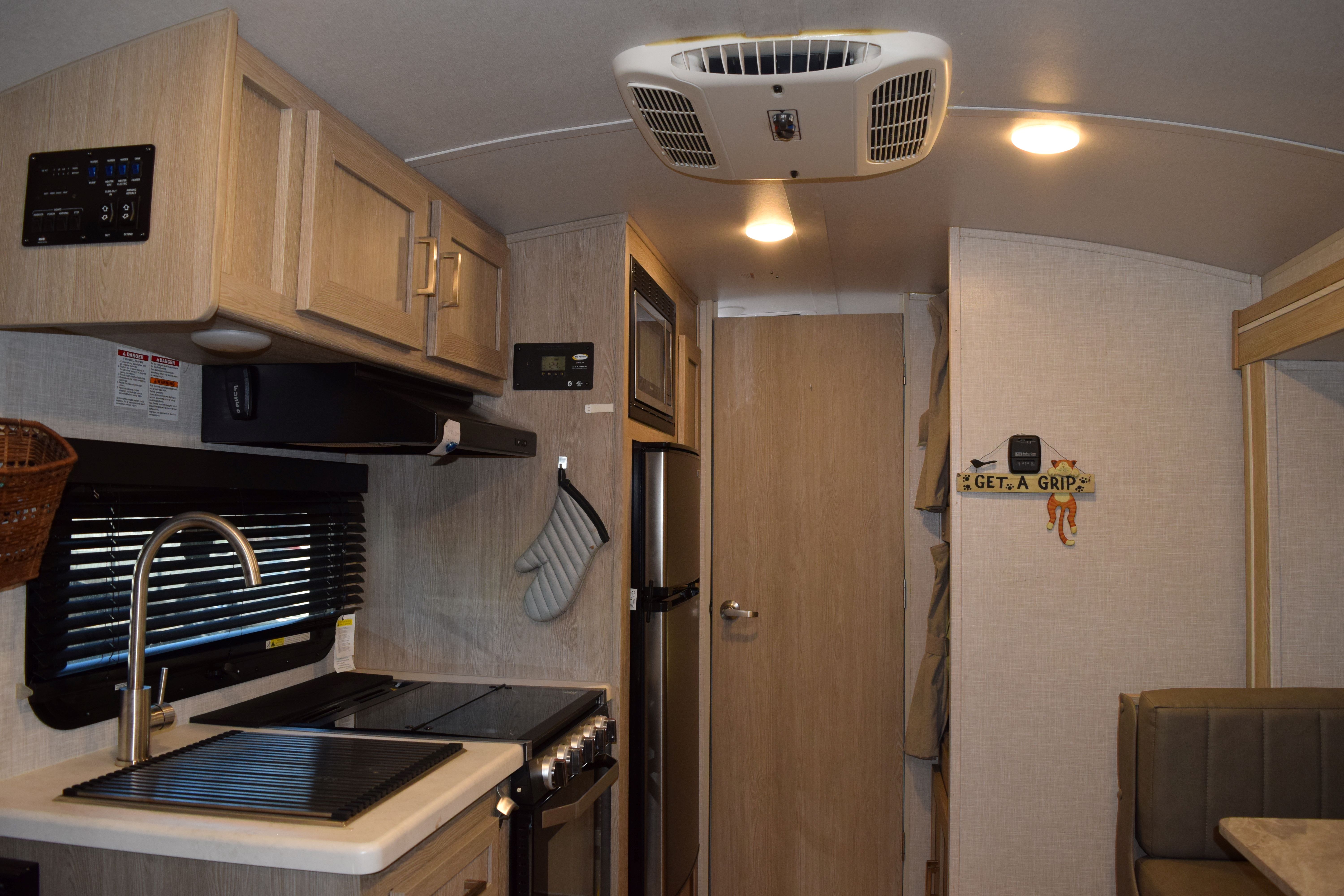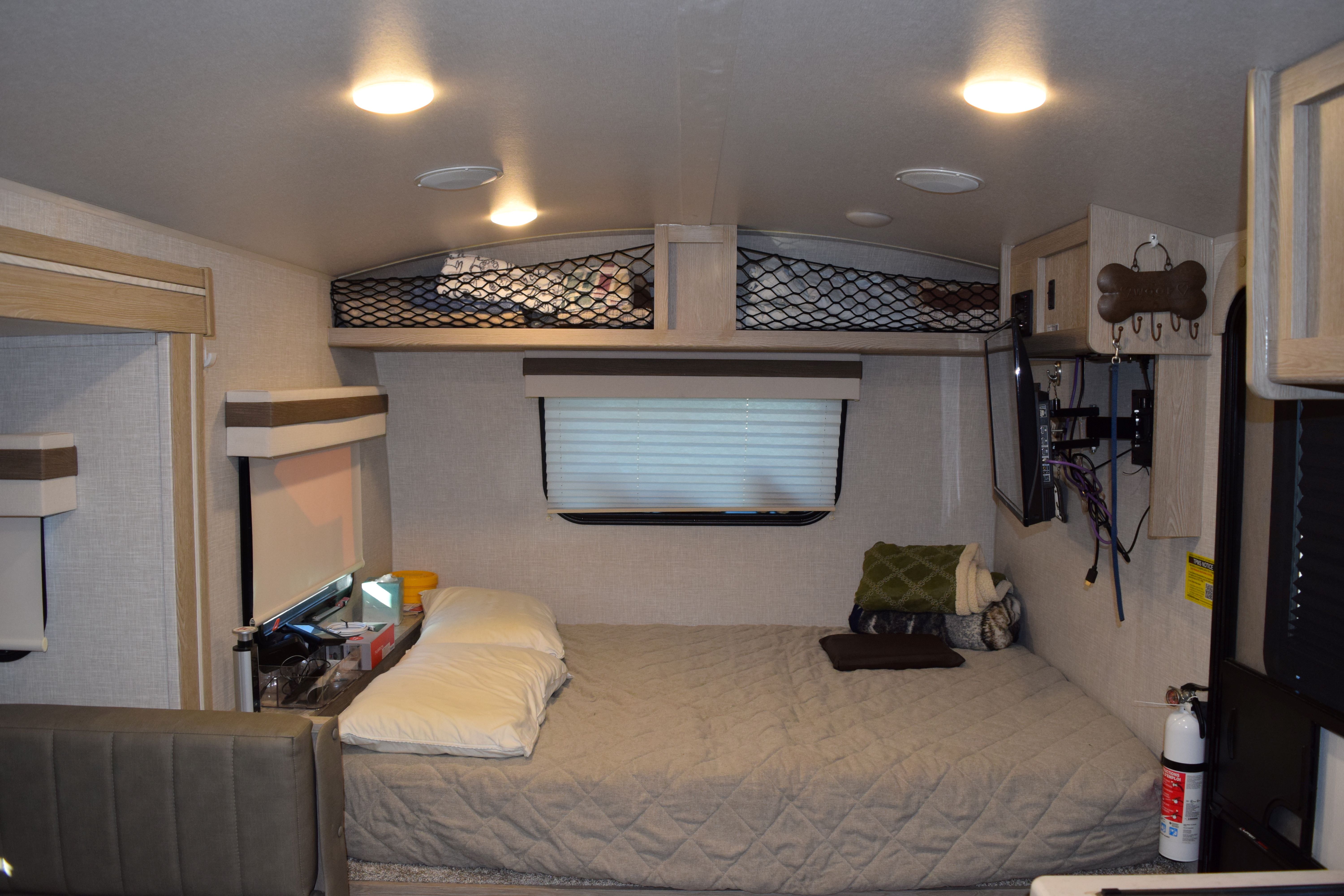 **RECEENT PRICE REDUCTION** This 2022 Rockwood GeoPro (M-20BHS) is just the little unit for you! At 21ft, this travel trailer is the ideal set up for a couple or small family looking to hit the road. The front of the trailer houses a full/queen size bed with bedside shelf and overhead cargo net storage. The kitchen is equipped with a bench-style dinette that converts into a sleeping area, large sink, 3-burner stove/oven combo, microwave, 2-door fridge/freezer combo, and lots of storage options. This trailer also comes with twin bunks, which is great for small families for the kiddos to have their own space. The full bathroom is at the rear of the trailer. The unit is also stocked with a Coleman rooftop A/C, water heater, furnace, outdoor shower station, secondary mini door with access to the bunks, powered patio awning, powered leveling jacks, TV, back up camera, recently replaced tires, TPMS system and pop-up charging tower. Come by to see this cute little unit for yourself, or call today with any questions or inquiries. 352-589-4422