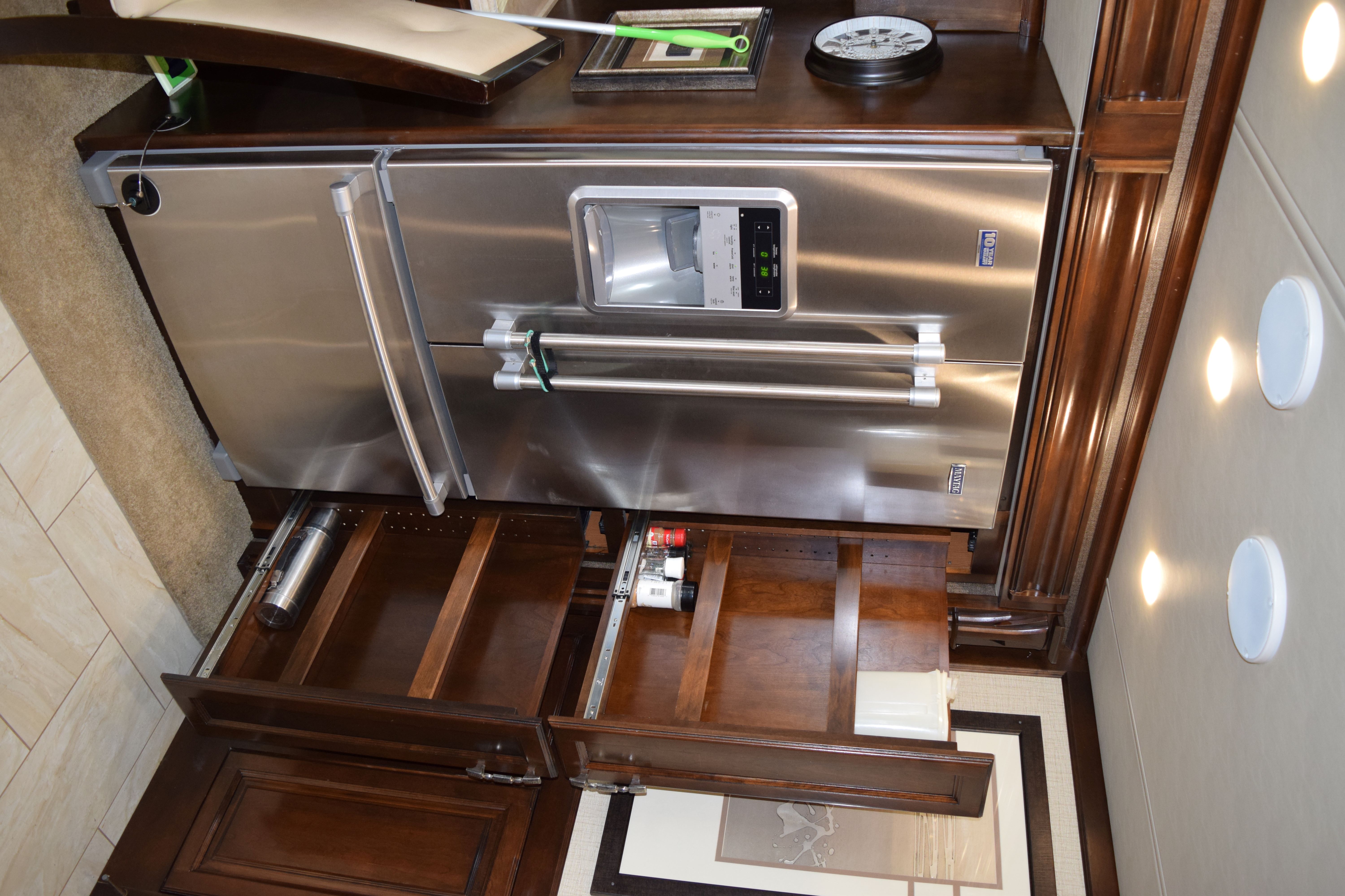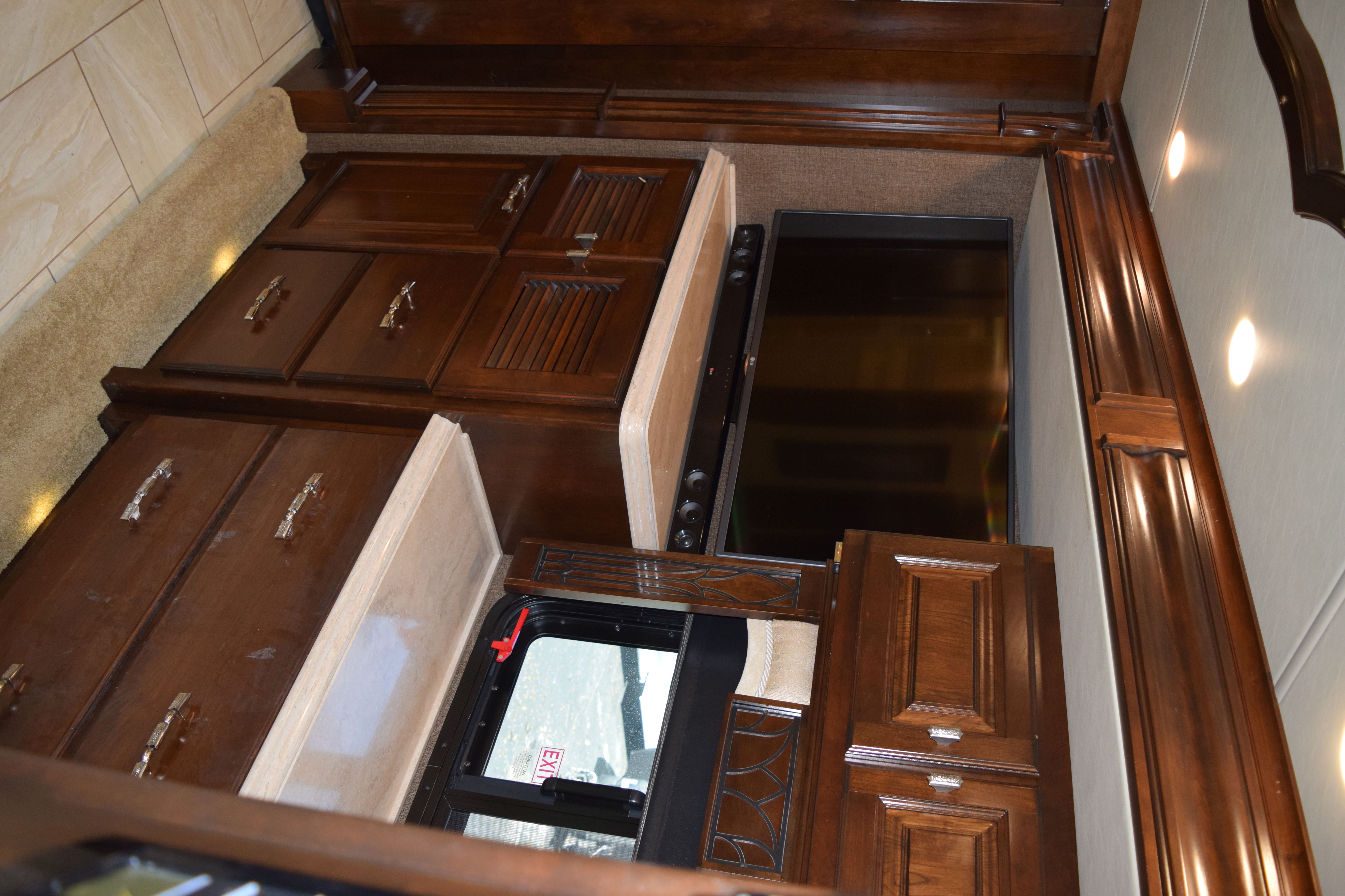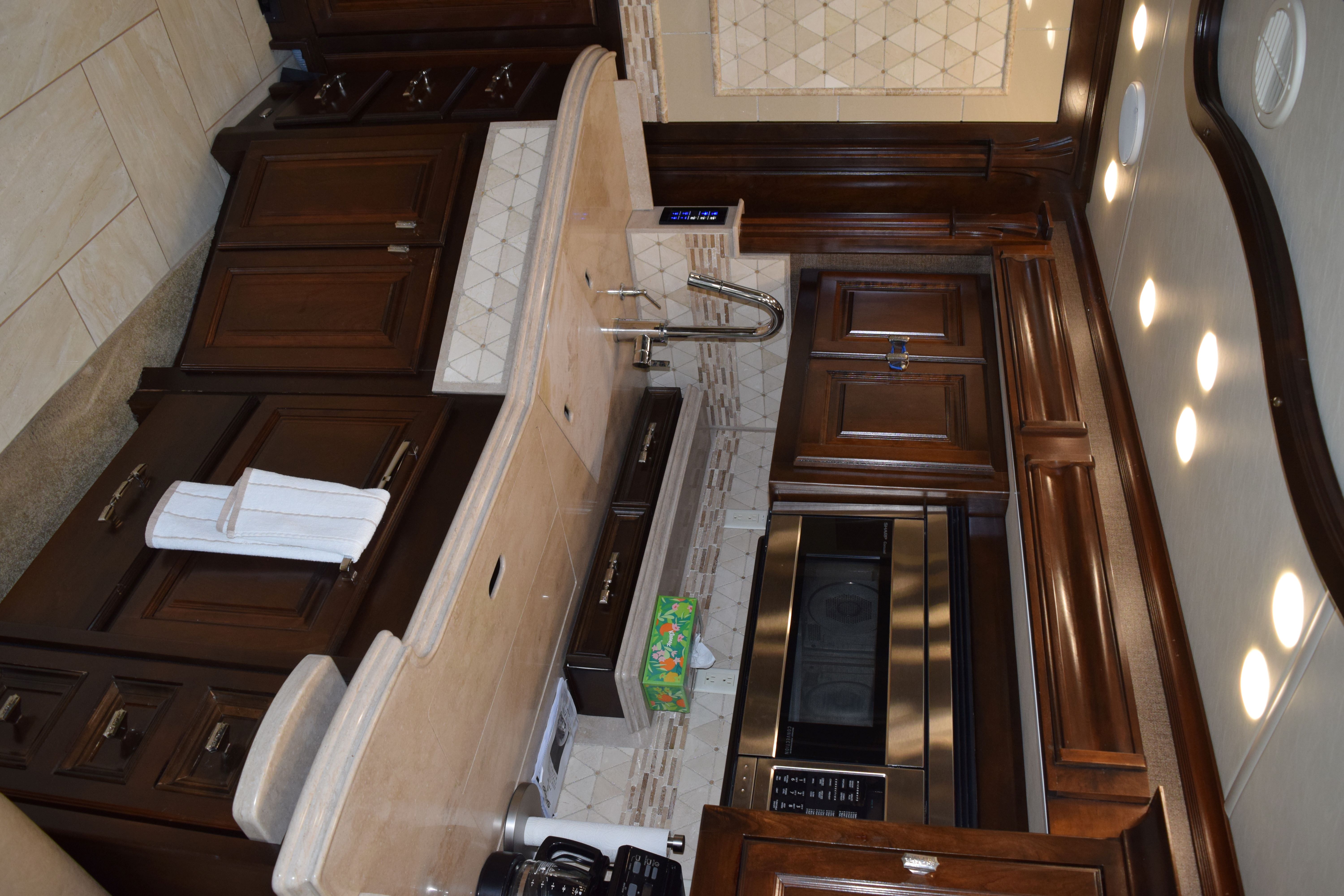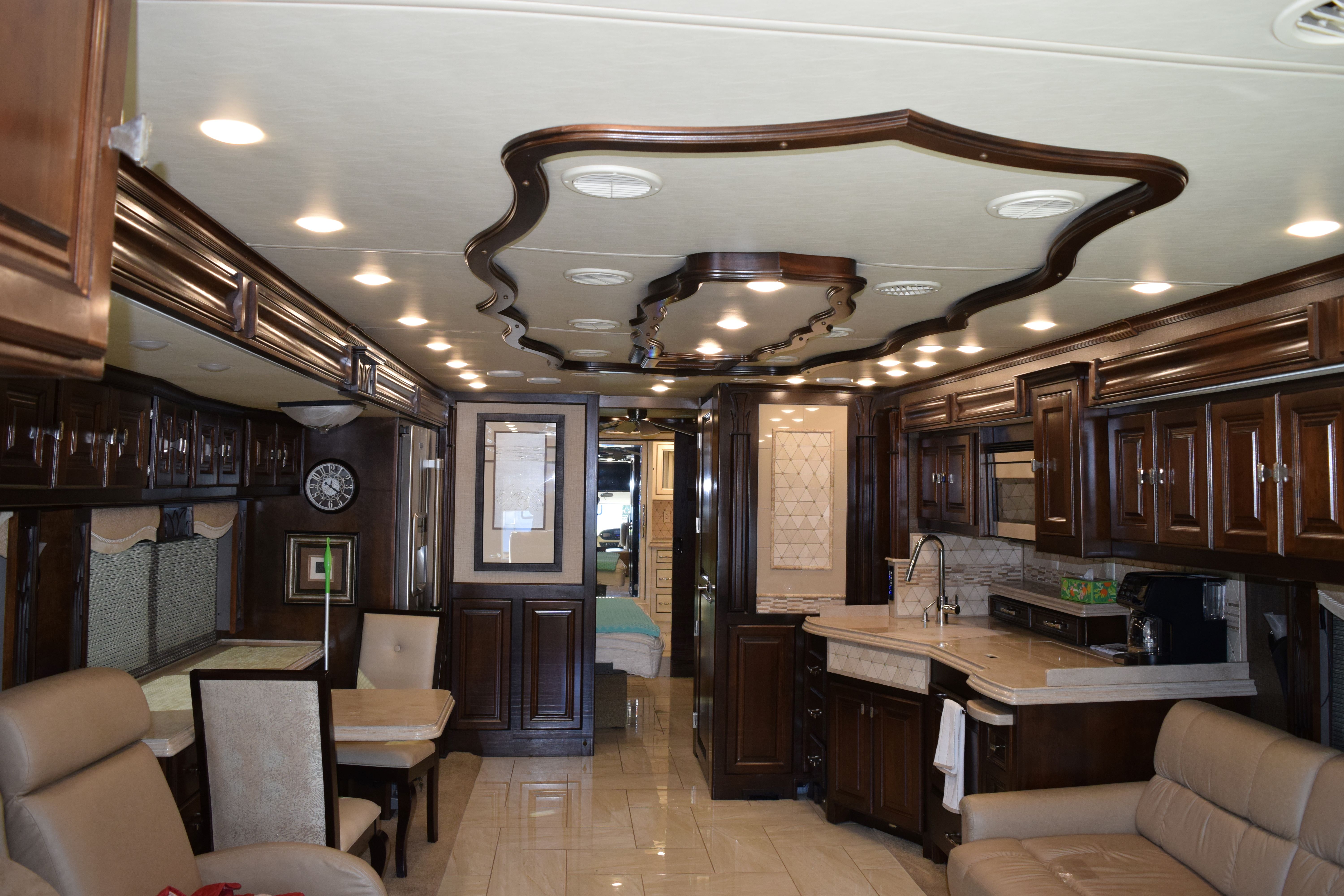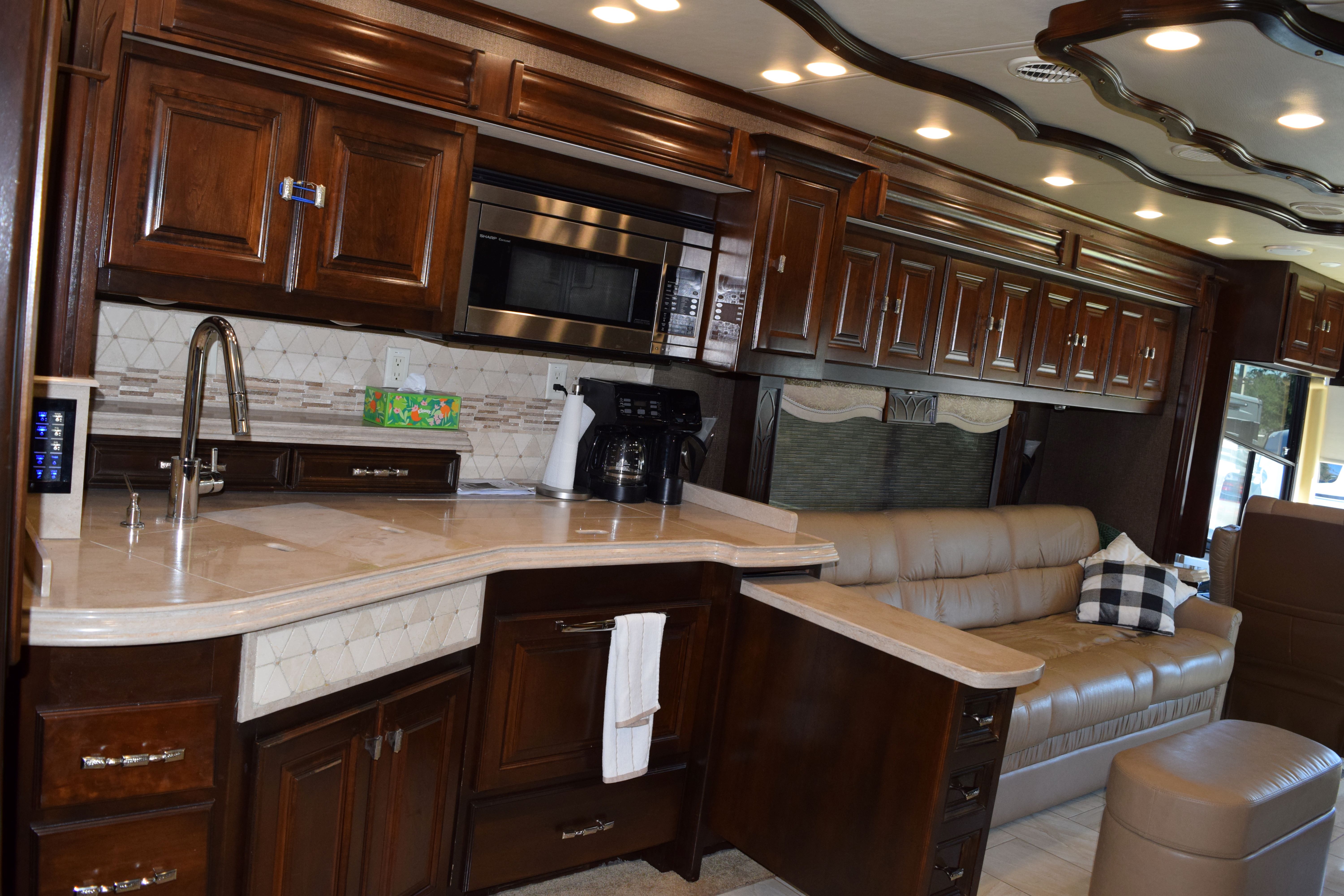 Make way for this magnificent coach! This 2016 Tiffiin Allegro Bus (M-40SP) will allow you to travel the states in luxury and style. Seated on a Powerglide chassis and powered by a Cummins 450hp engine with Allison transmission, this diesel coach will not disappoint. The current mileage is only 36,245 miles. Once you step into this Rustic Canyon colored coach using its powered entrance step, you are welcomed by the beautiful basket weave tile floors, watercolor interior, and glazed canyon cherry hardwood cabinetry. The living area is furnished with a luxury recliner, entertainment center with fireplace, spacious AirCoil Hide-A-Bed sofa that converts to a bed, and dinette comp work station. This kitchen for this coach can only be described as remarkable with its tile backsplash and solid surface countertop with pull-out extender. The space is also equipped with a dual sink with matching covers, pull-down single handle kitchen faucet, dual burner portable cooktop, dishwasher, twin pull-out pantry with adjustable shelving, and tons of storage space options. All of the major appliances are residential stye, which includes a microwave/convection oven, three-door french door style fridge/freezer with ice maker and water dispenser, and two-piece stacking washer and dryer (located in the main bedroom housed in the glazed white chocolate water closet). There is also a half bath at the edge of the kitchen to make traveling all the more convenient. The main bedroom area is extremely spacious and houses a king-size Air Comfort bed and lots of closet space with safe for locking away valuables. The bed also raises for additional storage. The full, en-suite bathroom includes a glass radius shower enclosure and single vanity with even more storage opportunities. All windows are shaded with day/night shades, and the windshield has its own powered privacy and sun shade. The interior of the coach is also fitted with three flat screen TVs, two blu-ray DVD players, overhead ventilation system, map lights, and a power step cover. All of this is powered by a 50AMP service with powered rewind reel. There is also an 10.0kW Onan diesel generator with auto start as an additional power source. The exterior of of the coach is just loaded as the interior. The roof is fiberglass and houses three Coleman rooftop A/C units with heat pumps. There is a total of three slide outs on this 41ft coach, all in which have slide out toppers. Three more additional manual window awnings can be found around the exterior for the frameless dual-paned tinted windows. The coach also has a powered Paramount main patio awning, as well as a main entrance awning. The basement pass-through storage compartments are all illuminated and equipped with both carpet and trays for ease of storage use. Other awesome features of this unit include an air leveling jack system, hydraunic heating system, tow hitch with Blue Ox tow bar, security and accent lights, and water heater. Come by to see this beauty for yourself, or call today with any questions or inquiries! 352-589-4422