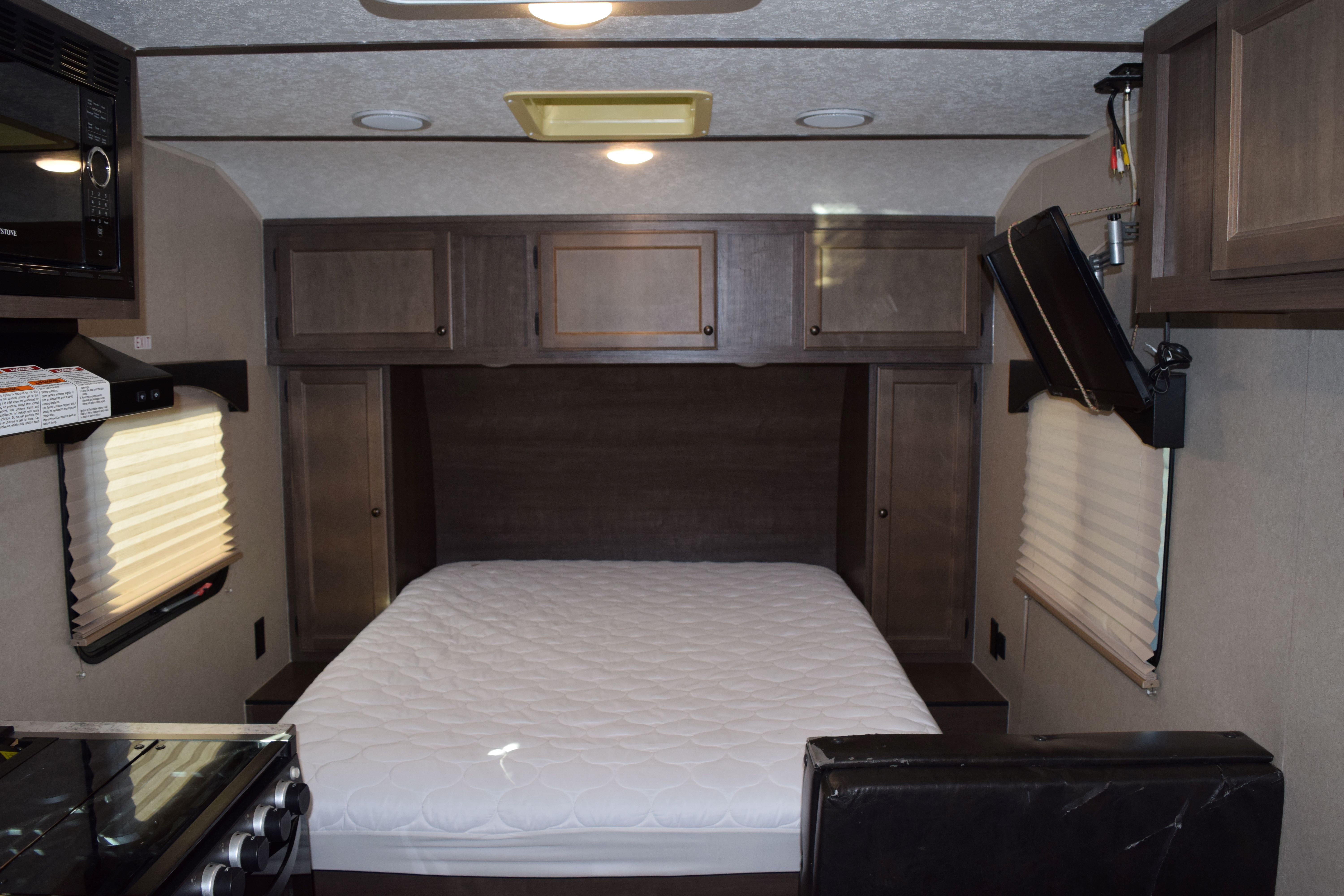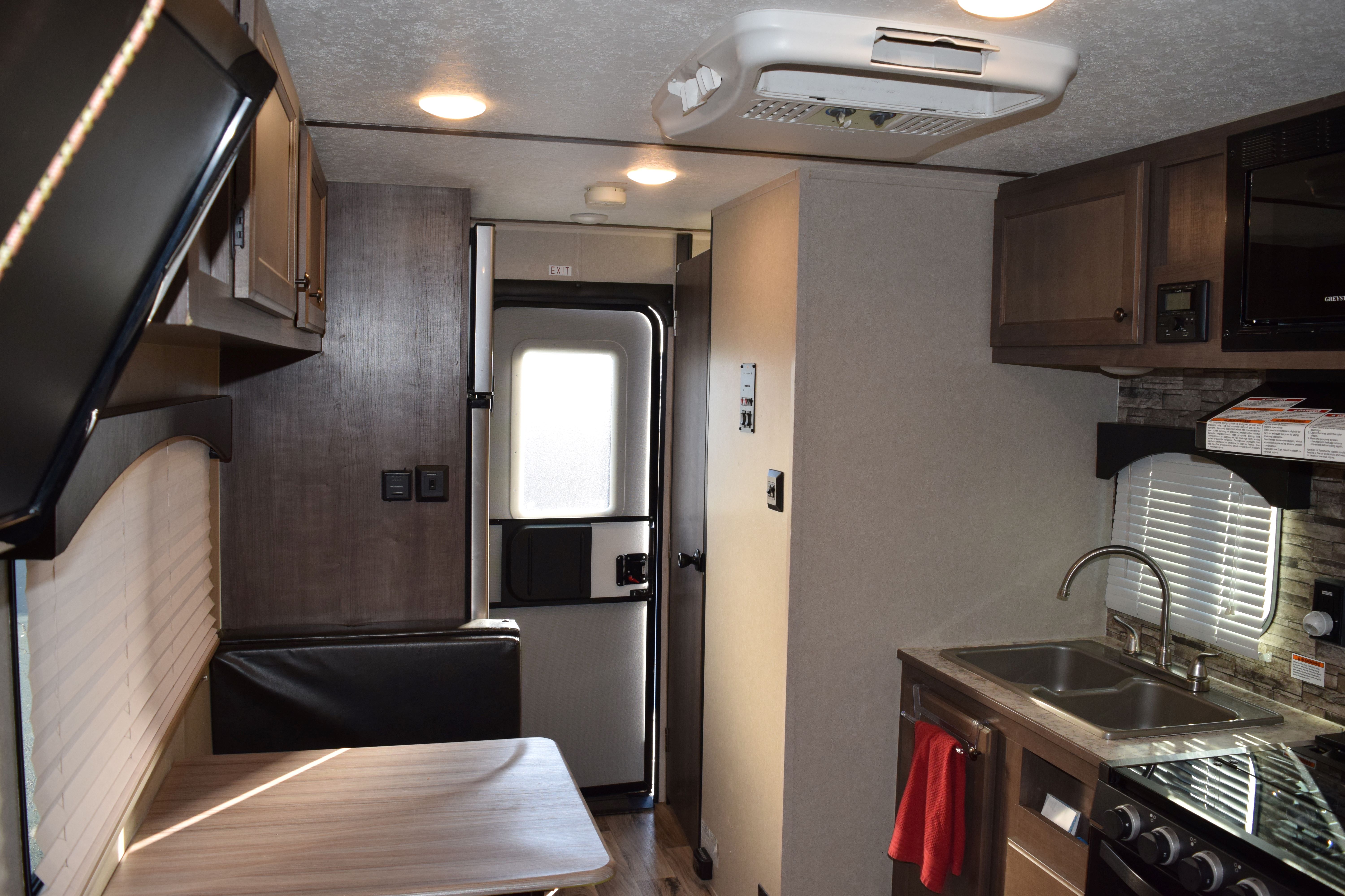 This 2021 Sunset Park Sun Lite (M-18RD) is the perfect little travel trailer for you! At 19ft, this unit is the optimal set up for solo campers or couple looking to travel the states. The entry is located in the very rear of the trailer and leads straight into the kitchen/dinette area. The full bath is also located near the entry door in the rear. The kitchen is equipped with a bench-style dinette that converts into a secondary sleeping area, lots of storage space, large dual sink, 3-burner stovetop/oven combos, 2-door Ever Chill 12 volt fridge/freezer combo, and microwave. The front of the trailer houses the queen size bed and closet area for storage. The trailer is also stocked with a Dometic rooftop A/C, water heater, furnace, outdoor shower station, powered patio awning, powered leveling jacks, Winegard antenna. Come by to see this unit for yourself, or call today with any questions or inquiries. 352-589-4422