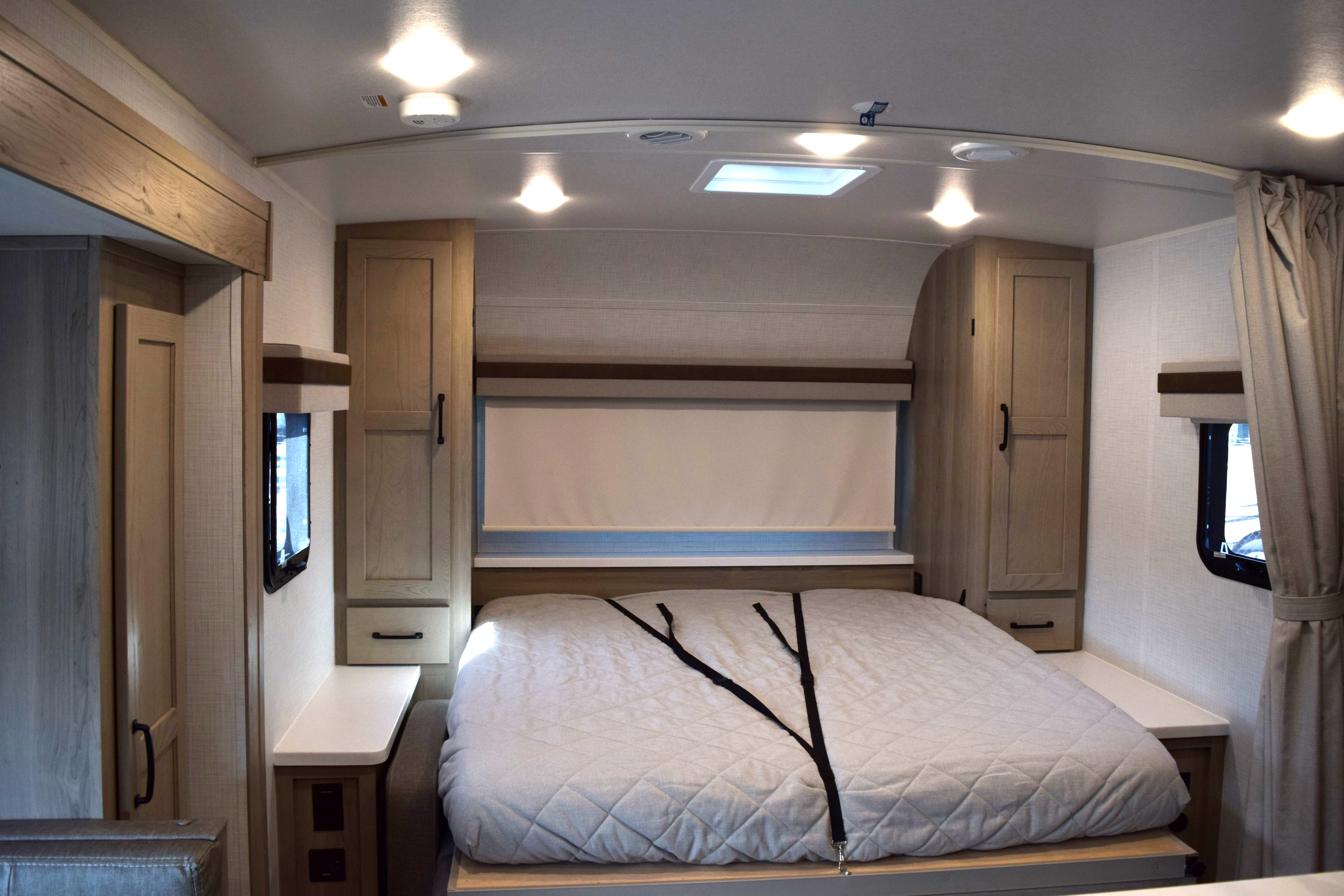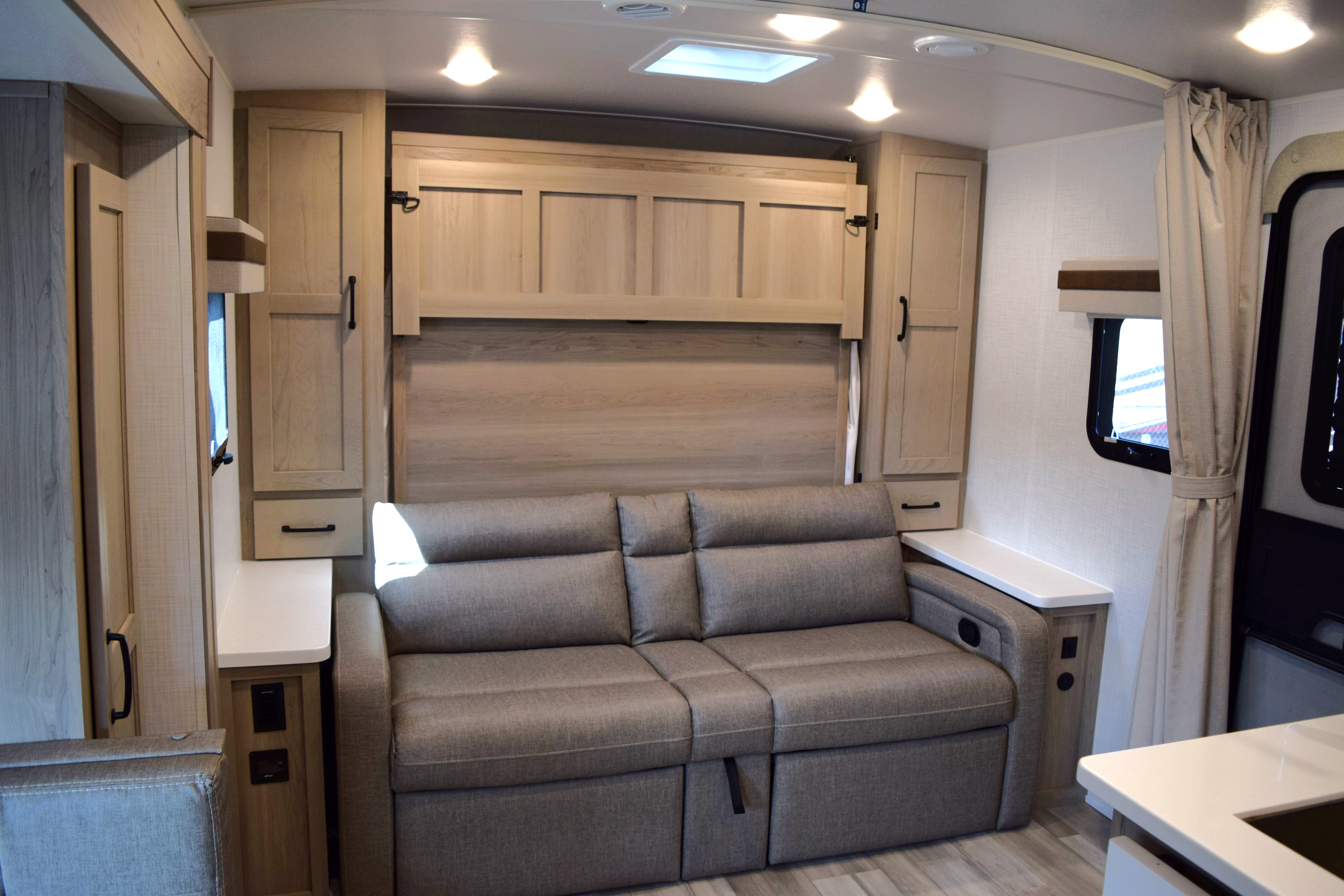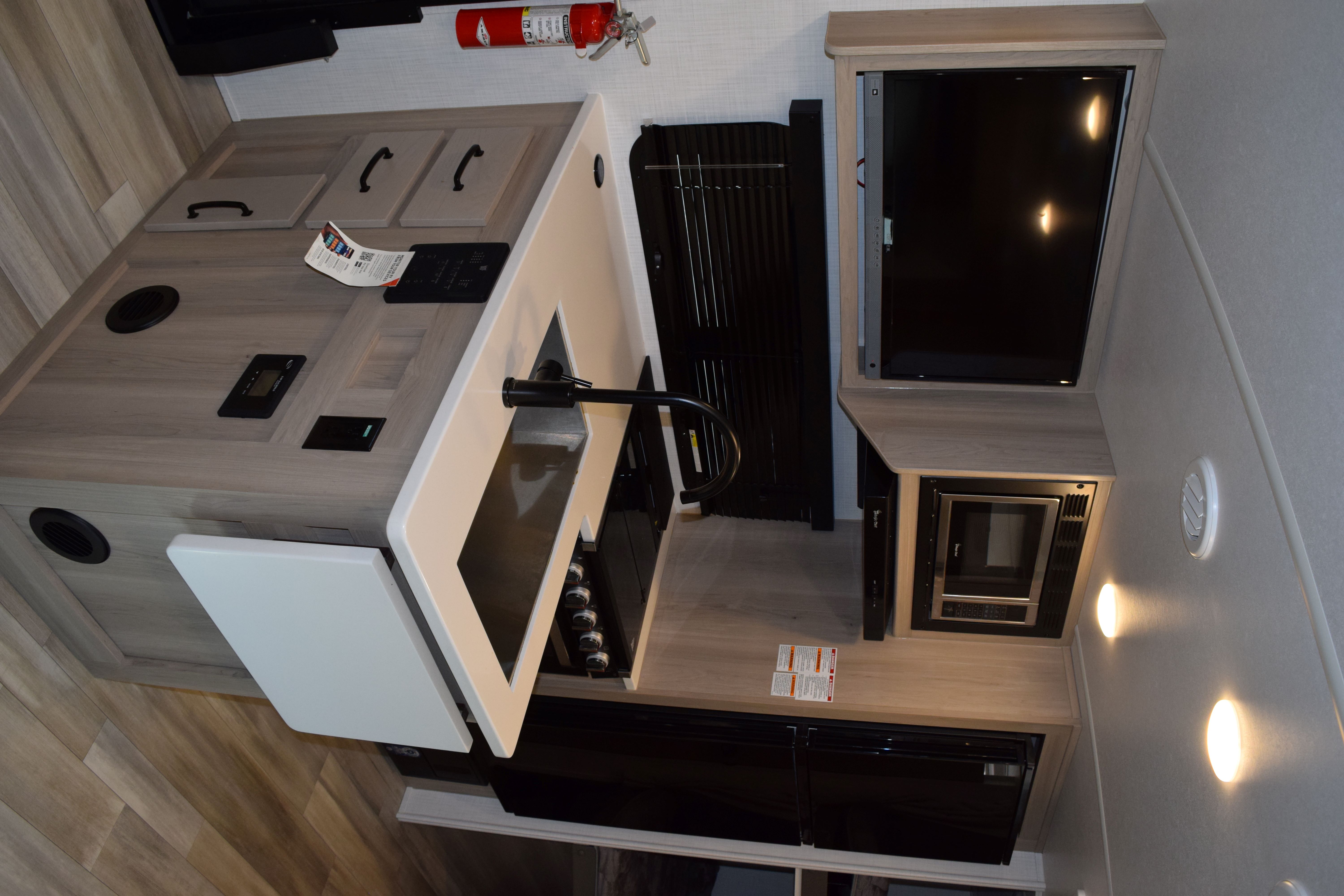 This 2024 Rookwood Mini Lite (M-2509S) has one of the most efficient layouts for a smaller trailer that you have ever seen. At 25ft, this trailer can sleep 4-6 people with ease. The front of the trailer houses a jack-knife couch that breaks down to accommodate for the murphy-style queen-size surrounded by loads of storage options. There is a bench style dinette with table that breaks down as another sleeping area. The kitchen is equipped with two stand-alone pantries, folding countertop that offers additional counter space, large single sink, 3-burner stovetop/oven combo, microwave, and 2-door fridge/freezer combo. The full bath is located in the rear of the trailer, accompanied with two large bunks for additional sleeping areas. The trailer is also stocked with a water heater, furnace, powered patio awning, retracting outlet tower, TV, Colman rooftop A/C, and powered leveling jack system. Come by to see this awesome unit for yourself, or call today with any questions!