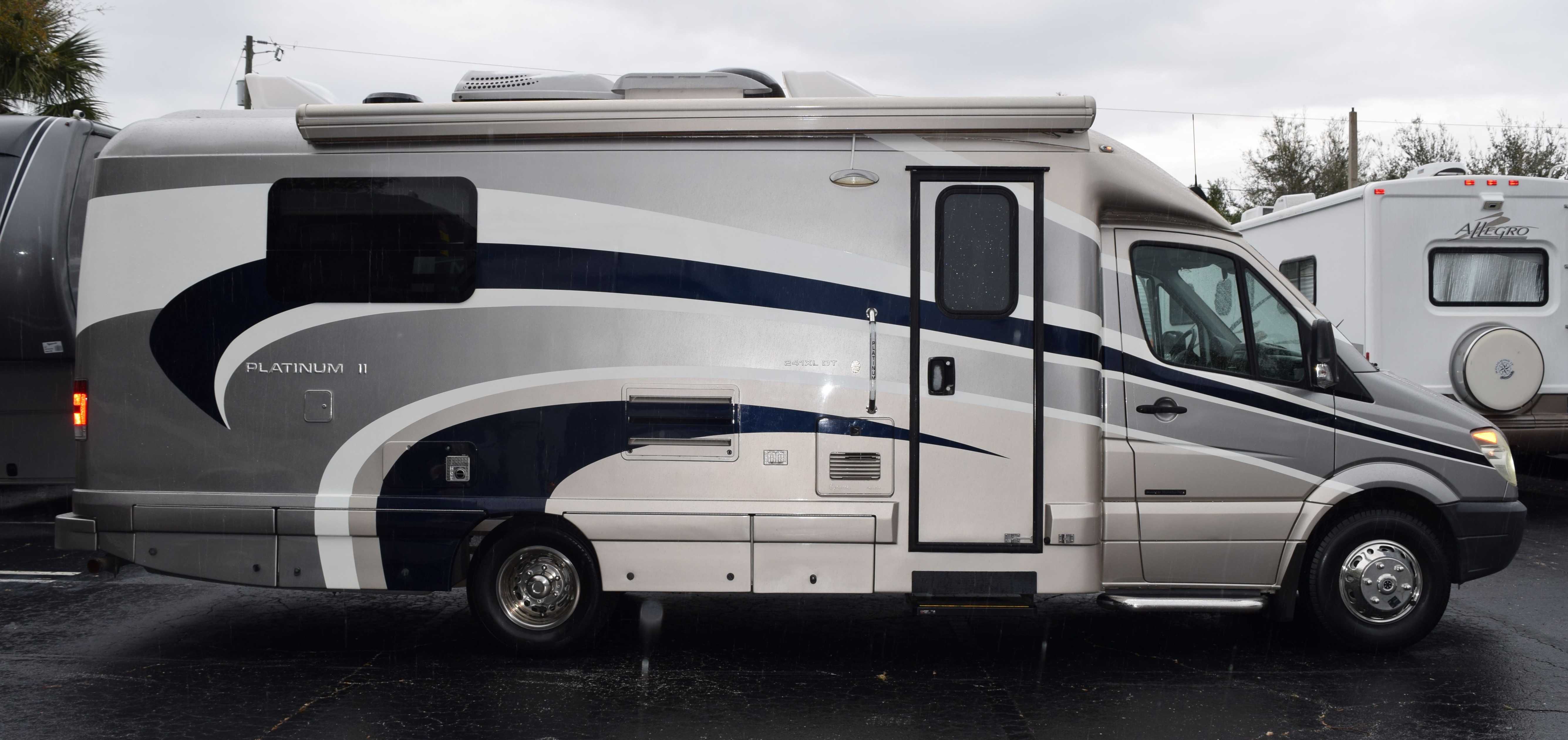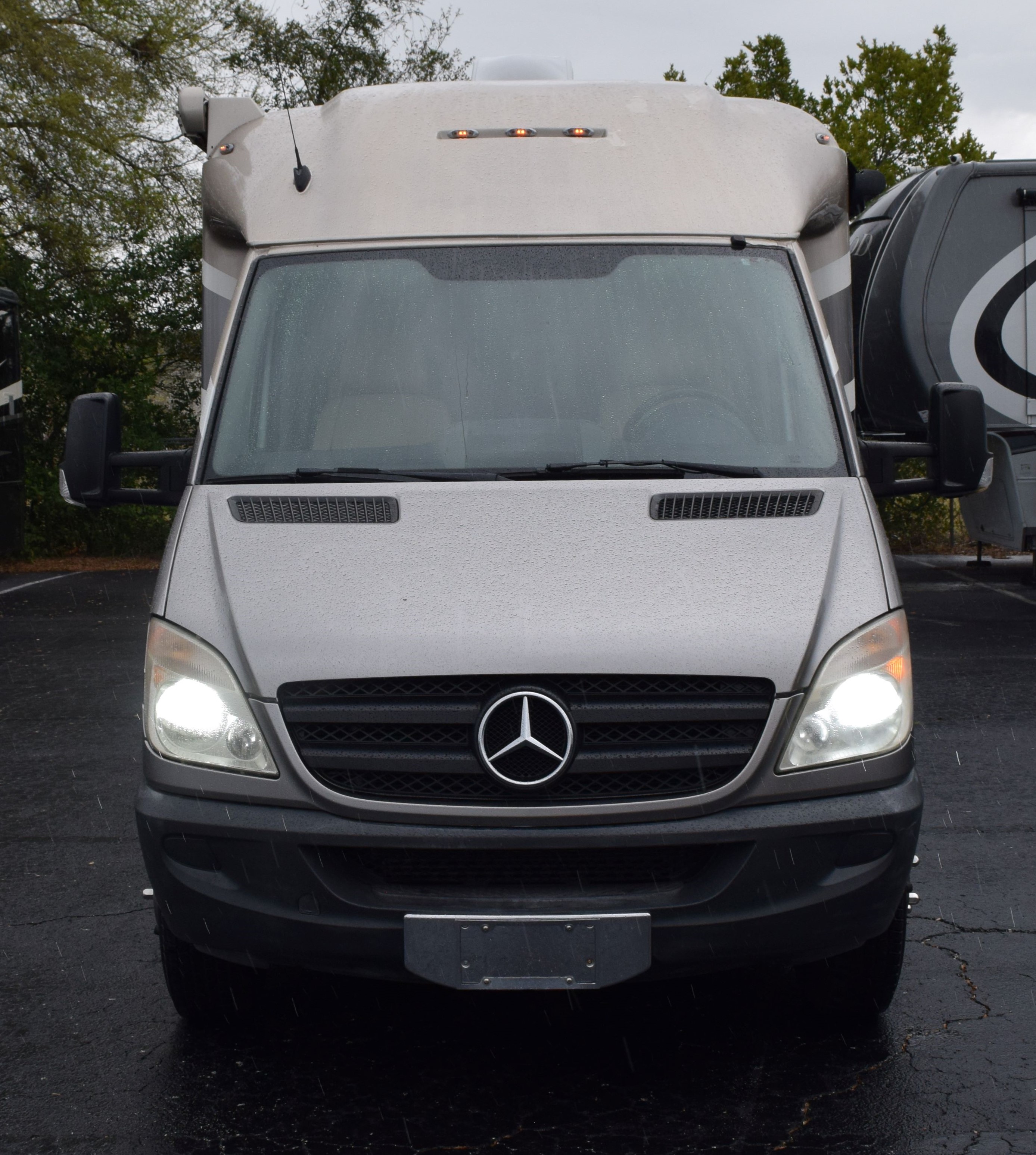 This 2013 Coach House Platinum II (M-241-XL) is the perfect little coach to take you on your next travelling adventure. Seated on a Mercades 3500 chassis and measuring in at 25.5ft long, this small diesel should not be underestimated. The current mileage is 76,561. The full bath is located in the rear of the coach, and is very spacious and private for this size unit. The sleeping arrangements consist of two twin beds in the rear, as well as a jack-knife couch that converts into a bed. The kitchen is equipped with a single sink, dual cooktop, respective covers for both the sink and cooktop and folding counter for additional countertop space, Keurig coffee maker, microwave, 2-door fridge/freezer combo, and several storage options. There is additional storage above the couch and before the cockpit area. This little coach also comes stocked with a Truma water heater, furnace, Dometic rooftop A/C, powered patio awning, one slide topper, electric entry steps, power cord reel, powered leveling system, backup camera system, upgraded bluetooth radio, and onboard generator. Also included with purchase of this motorhome is a braking system for towing, a Blue Ox tow bar, surge protector, and TPMS system. Come by to see this unit for yourself, or call today with any questions or inquires. 352-589-4422